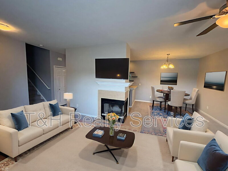 Fantastic Condo in popular Limestone Springs off 131st and Cumberland Road, minutes to Hamilton Towne Center, I-69, Ruoff Mortgage Center and more! This property features a spacious living room with a woodburning fireplace, perfect for gatherings. Share meals in the formal dining room, and take advantage of the galley kitchen with all appliances and lots of cabinet space included. Primary suite offers a walk-in closet. Outside enjoy the community playground and the scenic view to the lake. 1-car attached garage. Virtual staging used. 2-year lease preferred. Note: In addition to the monthly rent, residents will pay $45 each month for a Resident Benefits Package. Details: Zero Deposit option for qualified applicants. Details can be found here: 3D TOUR Pet Details: Pets Negotiable - Additional Fees Required