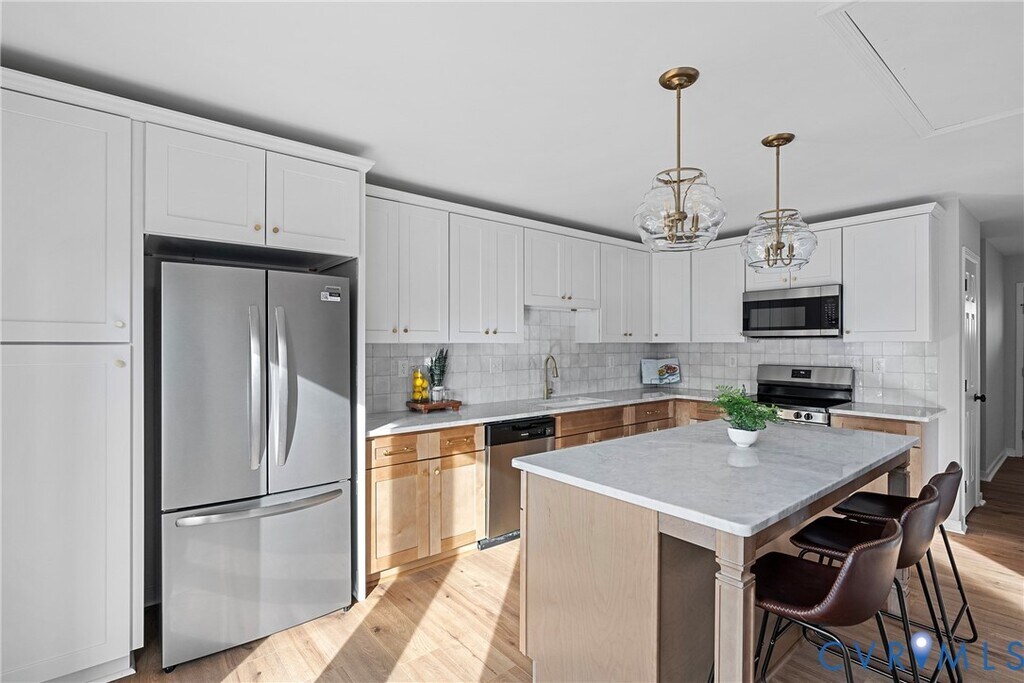 Welcome to 1342 Avatar Drive,a beautifully renovated ranch-style home in eastern Powhatan that offers the luxurious features you've been searching for. As you arrive,you'll be greeted by impressive curb appeal,with a freshly painted exterior,well-maintained landscaped beds,a charming covered front porch,& a brand-new front door. Step inside to discover brand-new luxury vinyl plank (LVP) flooring throughout the entire home. The living room is warm & inviting,featuring a wood-burning fireplace & vaulted ceilings. The heart of this home is the stunning,newly designed chef's kitchen,which boasts custom,soft-close true wood cabinets,sleek marble countertops,a large island,under-cabinet lighting,new light fixtures,& brand-new Frigidaire stainless steel appliances. The kitchen also includes a cozy eat-in dining area. The oversized primary bedroom features fresh,plush carpeting & a spacious walk-in closet. The en-suite bathroom is a true retreat,offering a fully tiled stand-up shower with a glass enclosure and rainfall showerhead,heated tile flooring,new lighting fixtures,a modern vanity,and a new commode. The second and third bedrooms are generously sized,equipped with brand-new carpet with memory foam padding,fresh paint,& ample closet space. The hallway bathroom has been beautifully updated with new tile flooring,a new vanity,& a new toilet. The large,flat backyard is ideal for outdoor activities & entertaining,& a detached shed offers additional storage space. Notable Features & Updates: New kitchen cabinets,marble countertops,Frigidaire stainless steel appliances,& lighting (2025) New waterproof luxury vinyl plank flooring & carpet with memory foam padding (2025) Fully renovated bathrooms (2025) New roof (2023) & new water heater (2025) Energy-efficient vinyl windows & all-new LED lighting This home is ready for its new owners to create countless happy memories. Don't miss the opportunity to make it yours! Owner is owner/agent licensed in the state of Virginia.