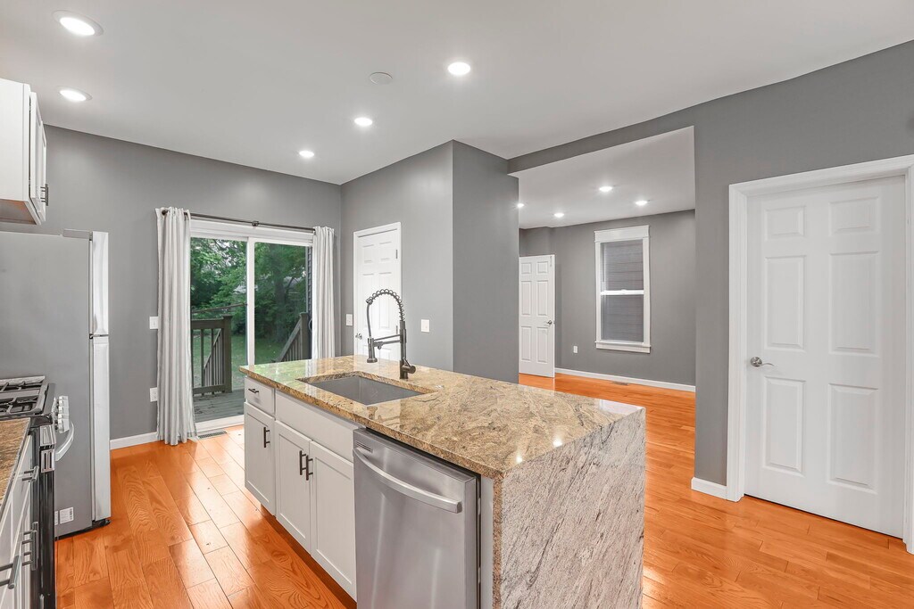 ASK THE SHOWING AGENT ABOUT MOVE-IN SPECIALS!!! Enjoy modern updates and classic charm in this beautifully renovated home, just minutes from downtown Columbus. Featuring 3 bedrooms plus a 3rd-floor bonus space, this property offers plenty of room to spread out.The main level showcases an open living and dining area with warm wood flooring, recessed lighting, and a modern kitchen complete with stainless steel appliances, granite countertops, and crisp white cabinetry. A half bath off the formal dining room adds convenience, and the first-floor laundry makes daily chores a breeze.Upstairs, you’ll find comfortable bedrooms, including a primary suite with its own en suite bath featuring a dual-sink vanity. Two additional bedrooms and another full bath provide flexible living arrangements. The third-floor bonus room is perfect for an office, playroom, or additional living space.Outside, enjoy the covered front porch for relaxing evenings or the rear deck overlooking the large yard, and take advantage of the home’s easy access to freeways, shops, and entertainment.Rental Requirements:Income must be at least 3x monthly rentSecurity deposit equal to 1 month’s rentOn-street parkingCriminal and background checks required