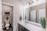 This home offers a comfortable and flexible rental option in a quiet neighborhood, perfect for anyone looking for a comfortable home and convenience. The open floor plan makes the home feel bright and welcoming, with a cozy living room and a kitchen stocked with new stainless steel appliances. The main bedroom is downstairs with a king-sized bed and private en-suite bathroom that includes a soaking tub for winding down at the end of the day. Upstairs, you’ll find two more bedrooms, and secondary living-family room with plenty of space to spread out. There’s also a dedicated office downstairs, ideal for working from home or studying in peace. Out back, enjoy a private yard with space to relax, plus a two-car garage for parking and storage. Located close to great schools, shopping, and everyday conveniences, this home is move-in ready!