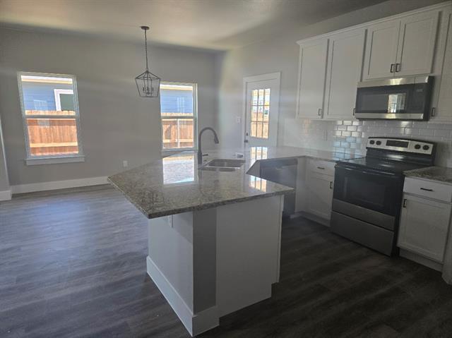 Be the first to live in this brand new home! You will appreciate how well built this home is and being so energy efficiency will save you money on your utility bills. There are many nice features of this home including the open concept floor plan, split bedroom arrangement, low maintenance flooring, spacious backyard with covered patio, large driveway that will easily hold 4 vehicles on top of the 2-car attached garage. The primary bedroom located at the back of the home has a beautiful, tiled shower with glass surround and door, double vanities, a private powder room and walk in closet with plenty of shelves and hanging space. All applicants must submit a completed application, one for each adult over 18, ID, proof of income for last 2 months. App fee is $75 each adult. Submit applications to