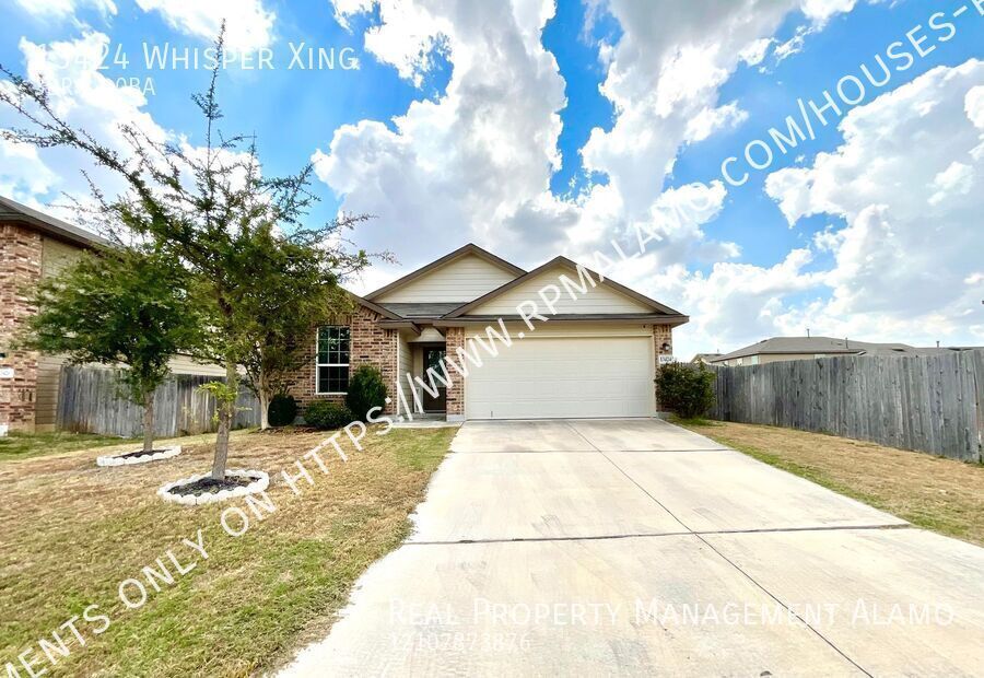 Experience the perfect blend of comfort, convenience, and community at 13424 Whisper Xing! This inviting 3-bedroom, 2-bathroom home offers a spacious and thoughtfully designed layout, perfect for a variety of lifestyles. Enjoy modern living with essential **appliances included—refrigerator, dishwasher, microwave, water softener, washer, dryer, and oven/stove—**providing a true move-in-ready experience. Ideally situated near Highway 90 and Highway 211, this location offers easy access for commuting and quick connectivity to shopping, dining, and entertainment throughout the city. Residents will love the vibrant community amenities, featuring a sparkling pool, basketball court, fully equipped gym, and two serene ponds—perfect for relaxing or staying active close to home. Plus, the nearby Community Center offers a variety of engaging activities and social opportunities for all ages. Combining modern comfort with exceptional convenience, this home is the perfect choice for those seeking an enjoyable and connected lifestyle. Don’t miss your chance to make this desirable property your new home! Schedule your showing today! For more information, contact us at Schedule a showing TODAY!: Apply here: RPM Alamo is proud to offer deposit-free living to qualified renters through Obligo! We understand that moving costs can add up, so we want to extend financial flexibility to our residents. When you move in with us, you can skip paying a security deposit and keep the cash for activities you care about. Learn more about the benefits of deposit-free living with Obligo’s brochure or on their website. All Real Property Management Alamo residents are enrolled in the Resident Benefits Package of their choice Tier 1 $55 or Tier 2 $70 monthly which includes HVAC air filter delivery (for applicable properties), credit building to help boost your credit score with timely rent payments, $1M Identity Protection, utility concierge service making utility connection a breeze during your move-in, our best-in-class resident rewards program, and much more! More details upon application. ***The information contained in this advertisement is subject to change. The terms of any lease, should you execute a lease with RPM, are found solely in the Lease Agreement itself, along with any applicable addenda. Situations that may affect change include, but are not limited to an applicant's credit rating which may affect the required security deposit amount, and new information provided to us regarding a unit that we did not know at the time we placed this advertisement.*** $350 Pet Fee Non Refundable $50 Pet Rent 2 Bathrooms 3 Bedroom Central Air/Heat Cluster Mailbox Community Park Community Pool Garage Island In Kitchen Laminate Flooring Spacious Backyard Washer/Dryer Water Softener