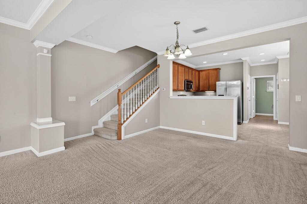 Located in the sought after Bartram Park community this well maintained end unit townhome offers peaceful pond views while being just minutes from shopping dining Baptist South Medical Center and Durbin Park Town Center. This 3 bedroom 2.5 bathroom townhome features a functional and spacious layout designed for comfortable living. The main level offers an open living and dining area with views of the water and direct access to a screened lanai providing a relaxing outdoor retreat. The kitchen includes 42 inch upper cabinets stainless steel appliances recessed lighting and a dedicated eat in area with ample storage and counter space. Upstairs the primary suite overlooks the pond and includes a vaulted ceiling a generous walk in closet and a private bathroom with dual sinks and a tub shower combination. Two additional bedrooms a full secondary bathroom and an upstairs laundry area complete the second floor. Residents enjoy access to community amenities including a pool and fitness center. This home is available for rent and ready for occupancy. Schedule your showing today.