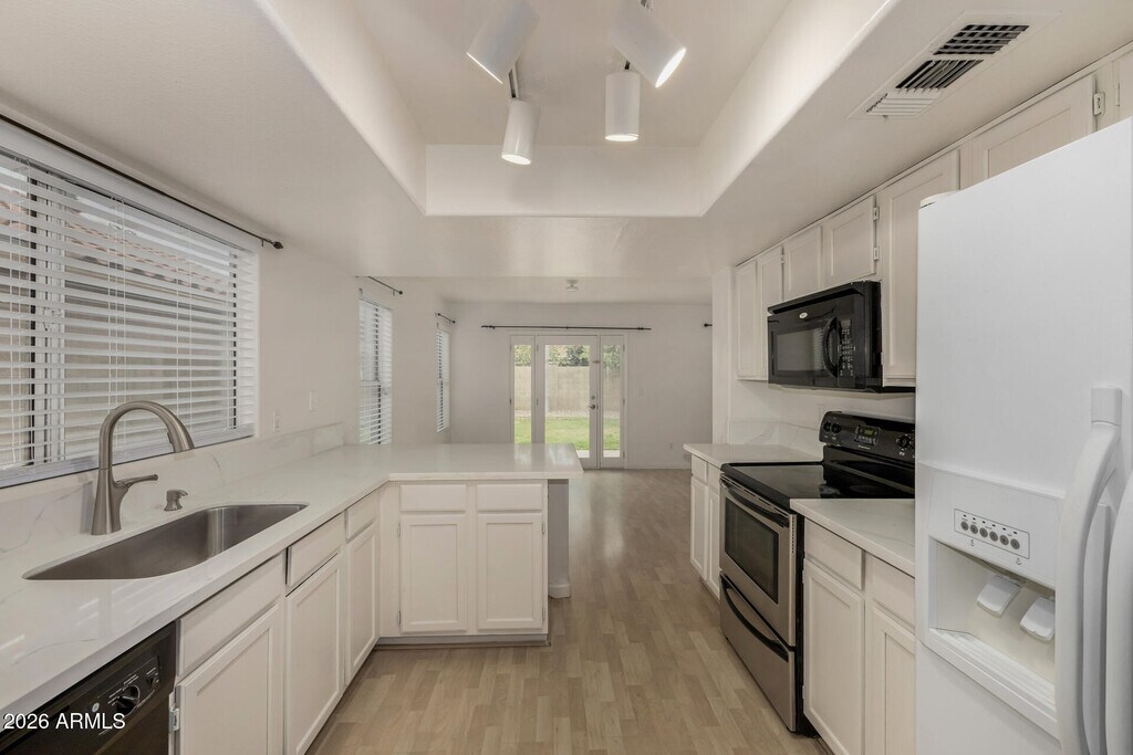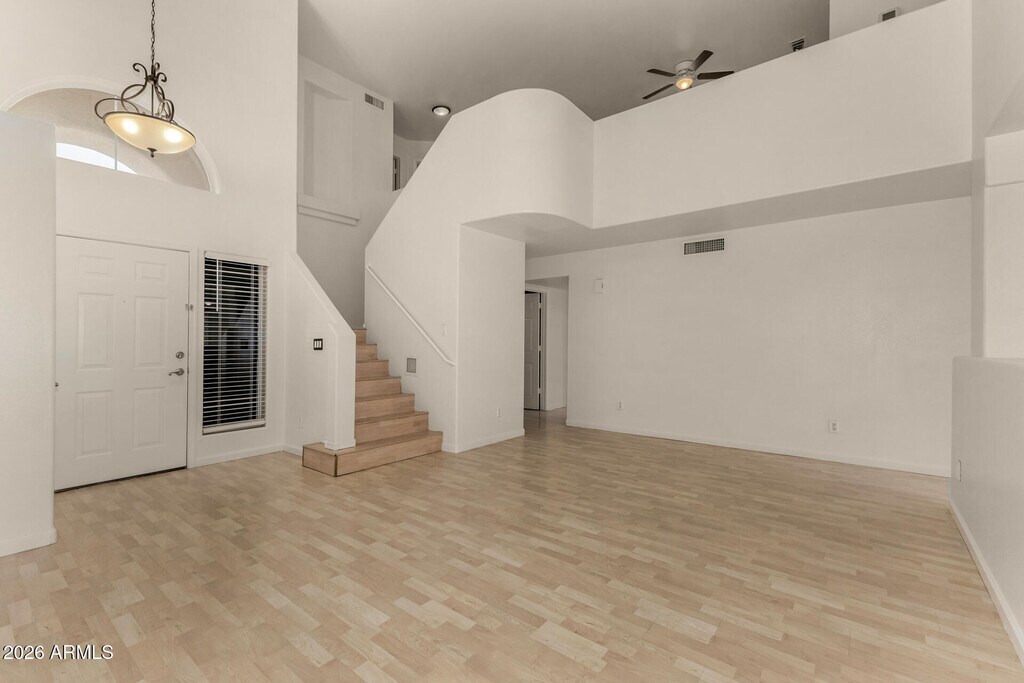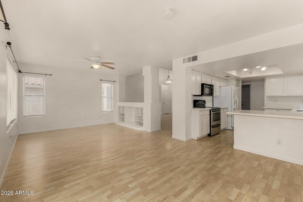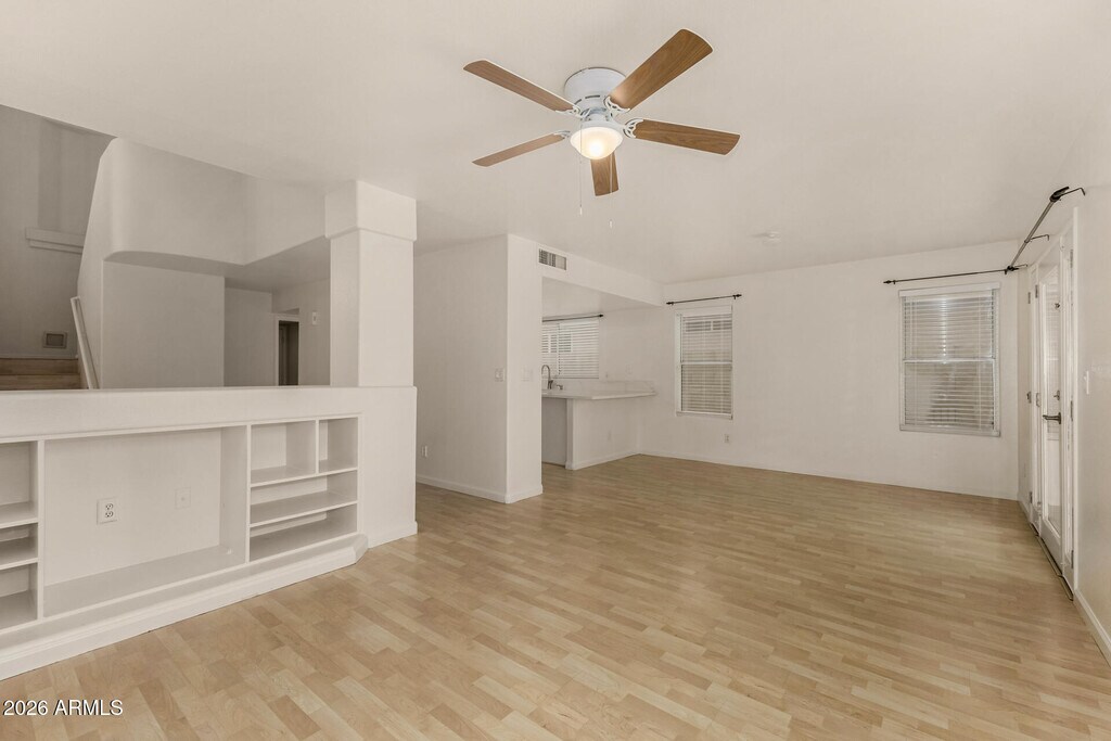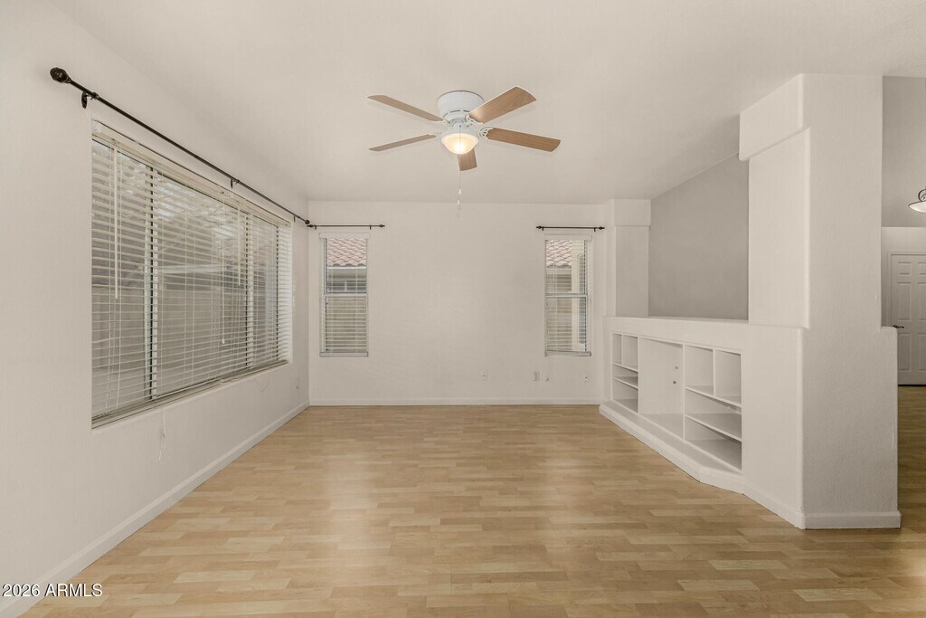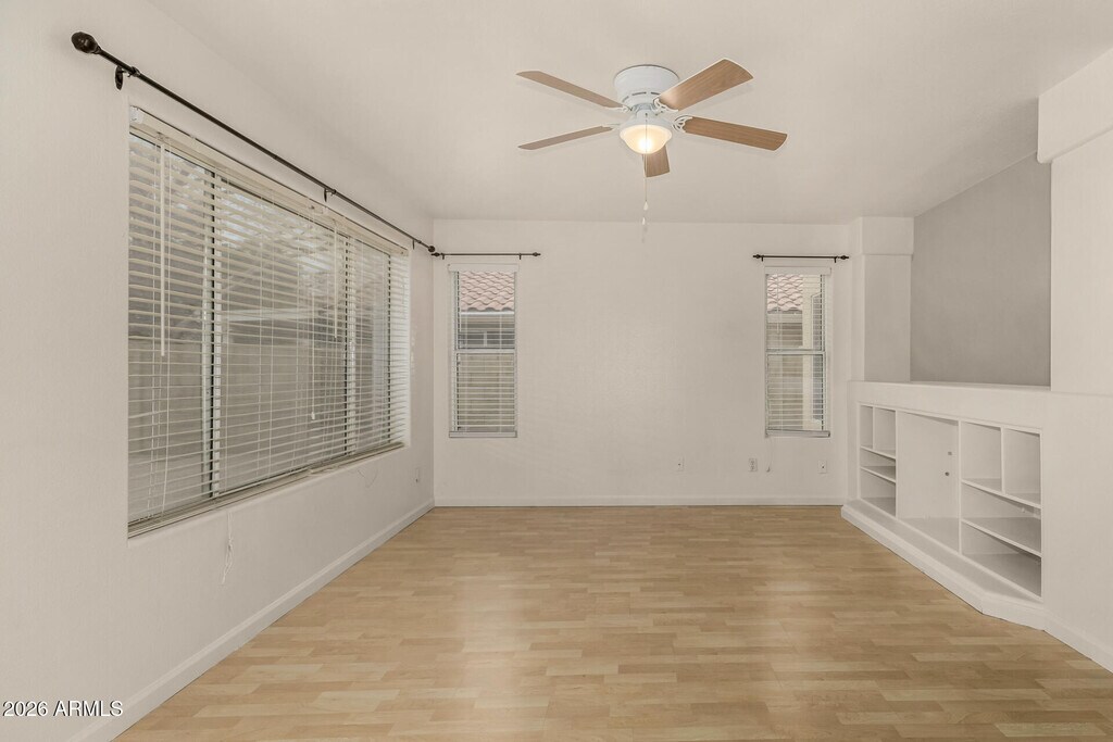This lovely 3 bedroom plus large loft,2.5 bath home has just had some updating completed - the bathrooms and kitchen. It has fresh paint inside. It includes a living room,family room and large eat-in kitchen. French doors lead to the nice backyard with a covered patio,grass and citrus tree. The floor plan is open and bright. The location is fantastic - close to many restaurants and shopping. Also has a close proximity to Loop 101,and SR-51. .