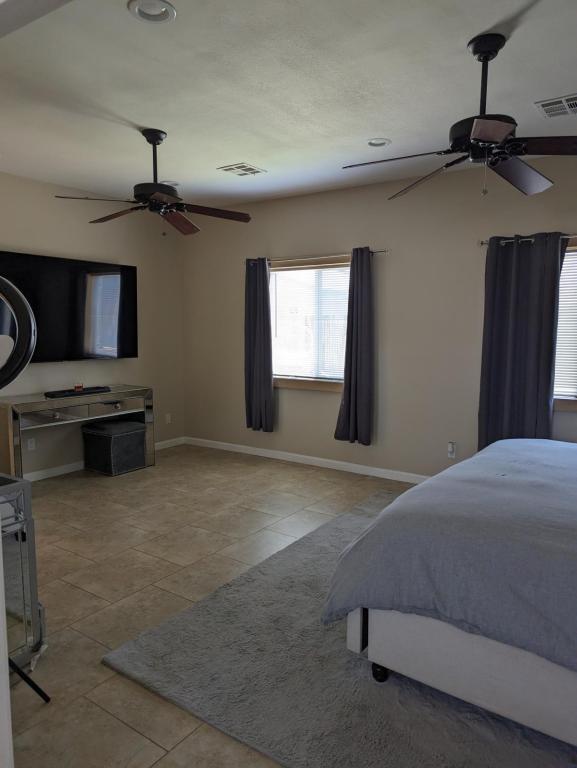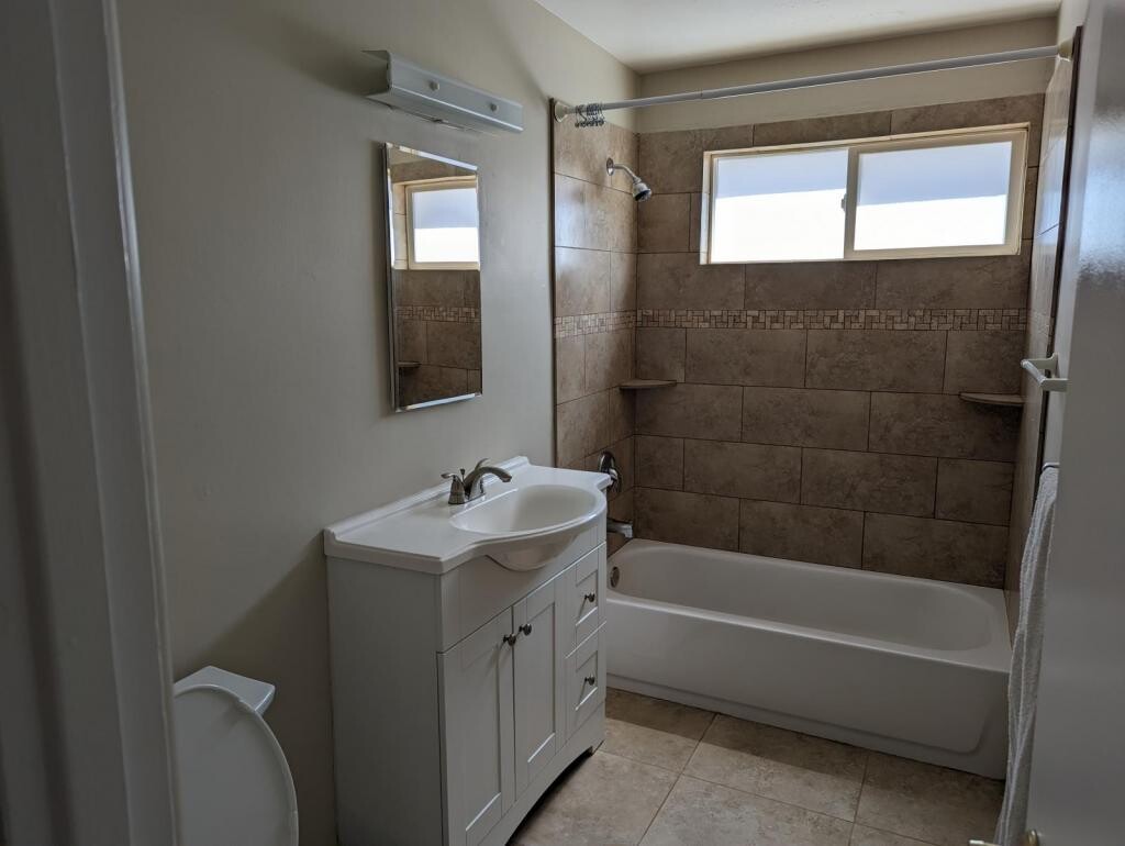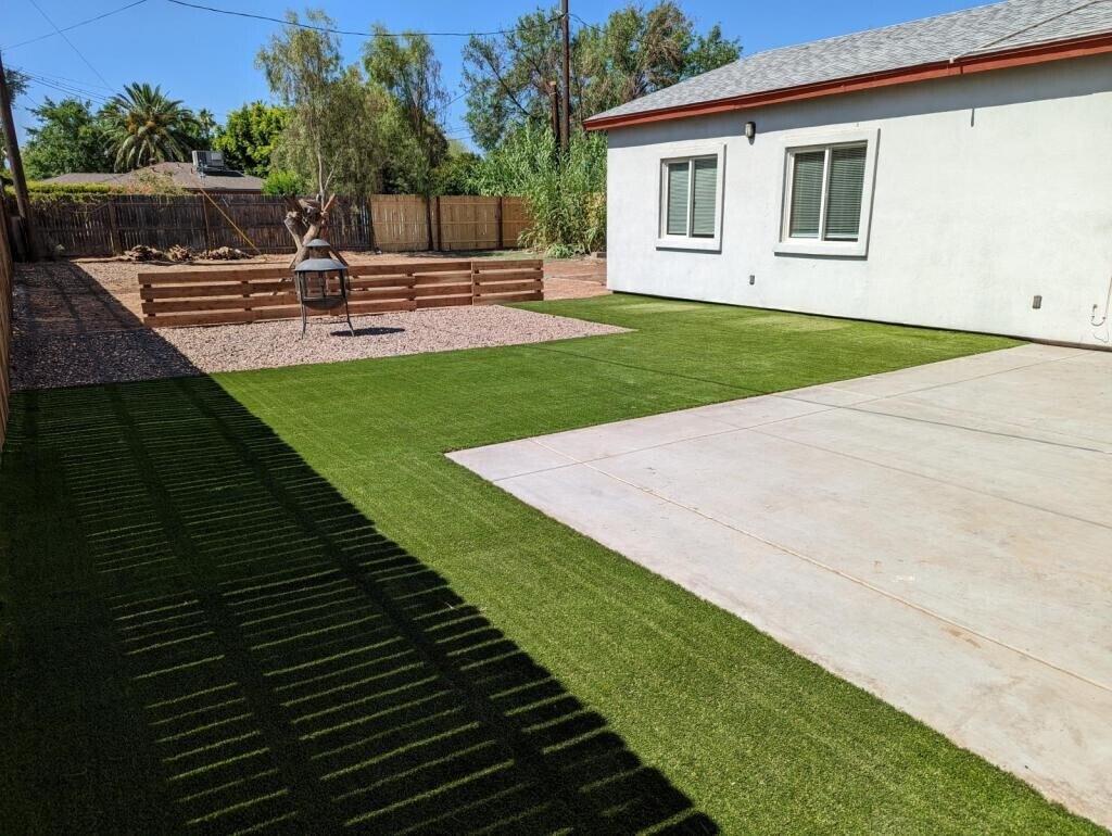 Step in the front door, and you will be surprised! This updated vintage home is much larger than you would think. The house has 2 living rooms and 4 bedrooms making it ideal for home office situations or large families. One family room leads to south facing patio with a large backyard, featuring a redesigned hardscape with seating area and a firepit. The updated kitchen has quartz countertops with a modern sink and new tile. Plenty of counter space and storage with a separate pantry. The refrigerator has a water and ice dispenser, and there is a gas cooktop with an electric oven. This house is well maintained with new toilets and overhead fans in all the bedrooms and living room. The 3 original bedrooms are wood laminate, and the rest of the house, including the master, is tile throughout. The huge master has an en suite bathroom with a walk-in shower and jacuzzi tub, a separate WC, and a huge Nordstrom closet. The utility room, with a dog door, has electric hookups and houses a complimentary dryer (to be maintained and/or replaced by the tenant). There is an attached carport and off-road parking. This is a large, spacious home in a great location. Come and see for yourself. Pets are allowed for an additional $100 deposit and a $20 a month fee, but please ask as certain breeds are restricted by insurance. We are owner/ managers who take care of our properties, looking for long-term renters who will do the same. Available early December, 2025 $25 per adult non-refundable application fee. Upon acceptance, move-in costs include a $ 195 admin fee, one month's rent as the security deposit, and the first month's rent. (Total: $5795) plus any pet deposits/rent. Proof of Renter's insurance is required before move in. A walkthrough video is available on request call Michele for more details or go to