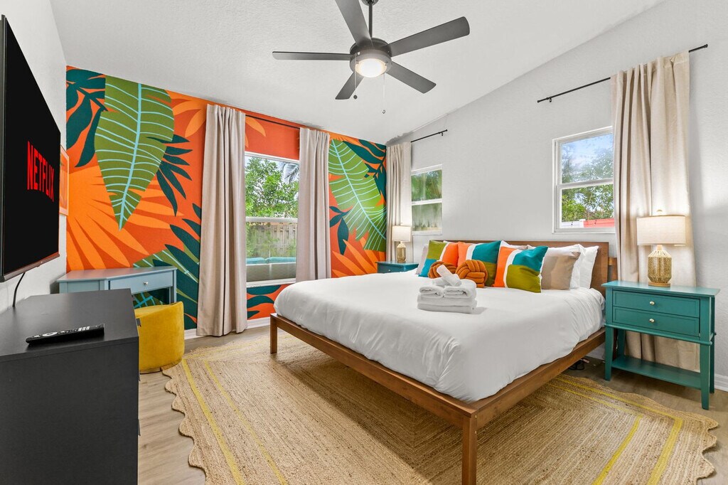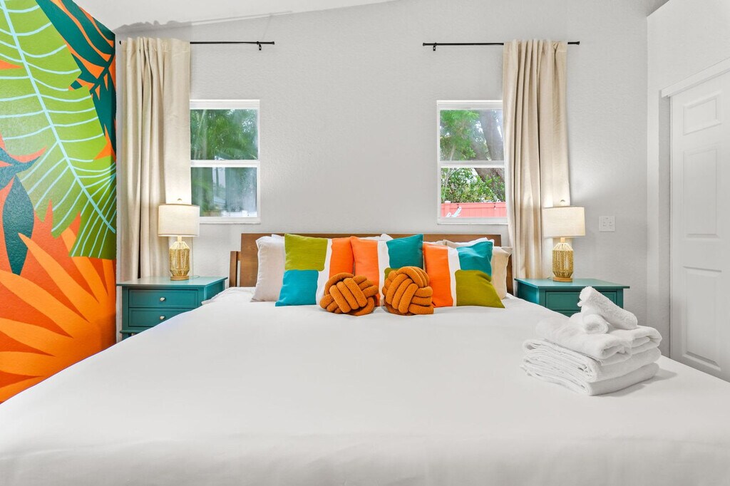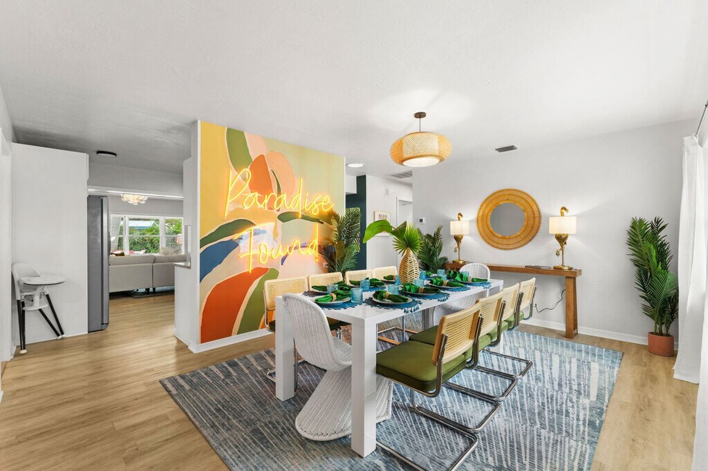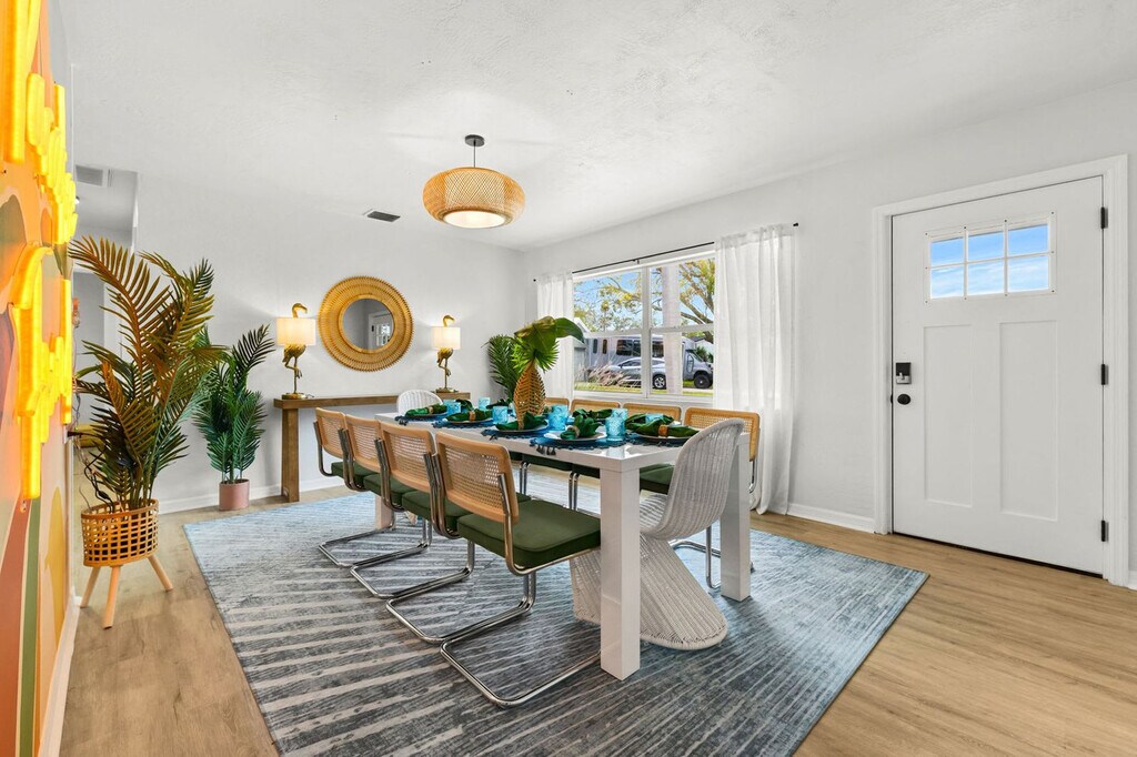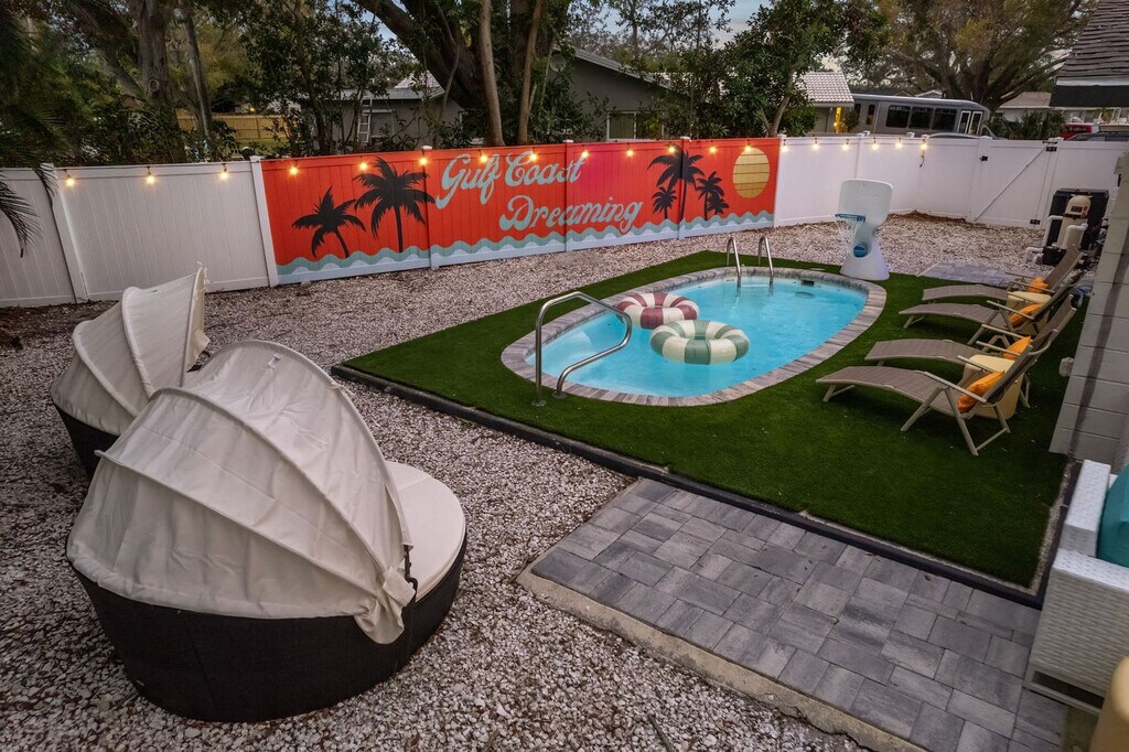 This 5-bedroom house in Seminole, FL, is packed with amenities and has everything you need for an amazing vacation. Feel at home with features like a heated private pool, sportscourt for basketball and pickleball, outdoor bar, hot tub, fire pit, outdoor patio and dining area, BBQ grill, and more. The house comfortably accommodates up to 18 guests, making it perfect for reunions, celebrations, or relaxing with loved ones. The house offers 5 spacious bedrooms and 2.5 bathrooms, ensuring comfort for all guests. Each bedroom is equipped with a smart TV, and the fully stocked kitchen boasts high-end stainless appliances, a large refrigerator, and ample cooking space. The living room features a 65" smart TV and direct outdoor access, while the spectacular resort-style backyard includes a heated private pool, sportscourt, outdoor bar, hot tub, fire pit, and ample outdoor seating. The heated private pool is available for $100 per night and can be heated to about 20-25 degrees above the ambient temperature. It is recommended to heat the pool between October and May, with a 3-day notice required before arrival. Parking is available for up to 3 cars. Explore the area with ease, whether by renting a car or using rideshare services like Uber and Lyft. Nearby attractions include Boca Ciega Millennium Park, Lake Seminole Park, Florida Botanical Gardens, and Treasure Island Fun Center. For dining, visit local favorites like Mamas Kitchen, Zom Hee Chinese Restaurant, Jimmy's Sushi, Doc Ford's Rum Bar and Grille, and Mad Beach Cantina. Check-in is at 4pm and check-out is at 10am. The primary guest must be at least 25 years old, and no pets or parties are allowed. Violations may result in immediate termination of the stay. An exterior camera is installed to monitor the cleaning team for quality and security purposes. Guests must be 21 years or older to book this property. A guest verification process is required within 48 hours of booking confirmation, and a rental agreement must be signed prior to check-in. A non-refundable $60 damage waiver is required, covering accidental damage during your stay, provided it is reported before check-out. The house includes a dedicated workspace, providing a comfortable environment for remote work. [SI]
