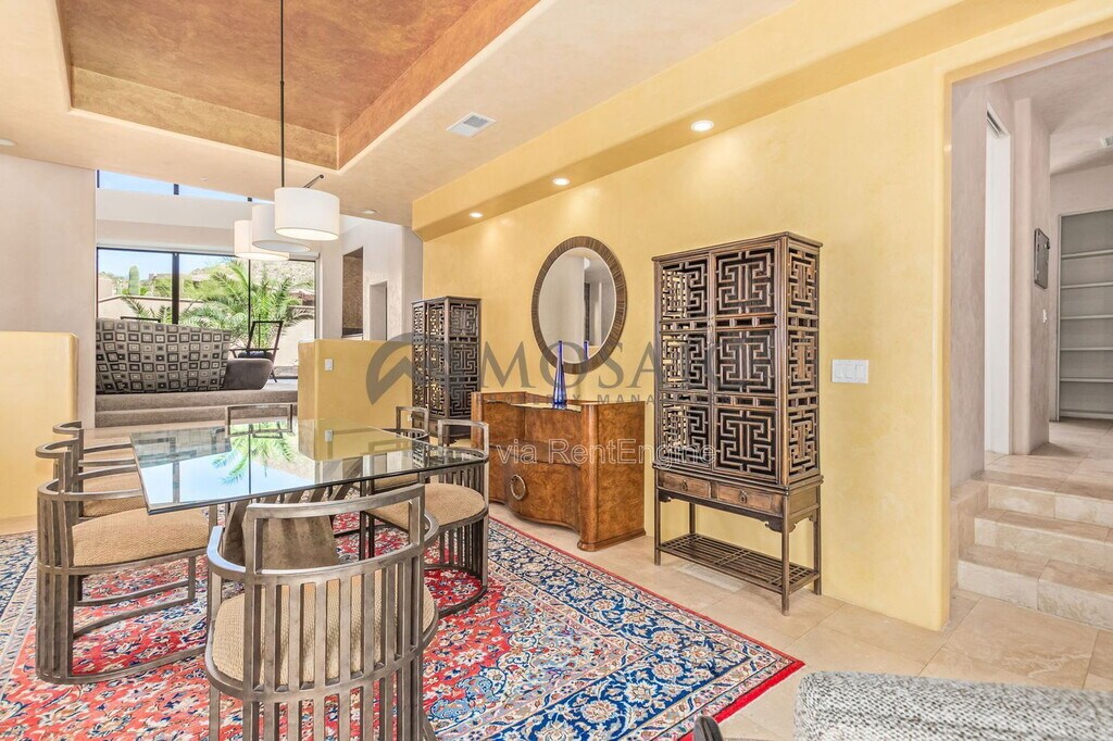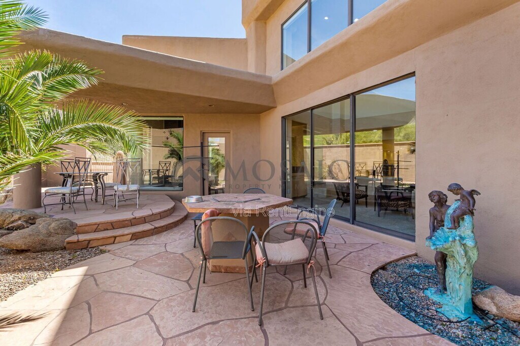 Nestled against the scenic mountainside, this home offers unmatched views, a sparkling private pool, and a layout designed for both relaxation and entertaining. This house has spacious, open-concept kitchen featuring granite countertops, a large walk-in pantry, double wall ovens, and a built-in wine fridge in the island—perfect for hosting or enjoying a quiet evening in. The home boasts multiple living areas, including a formal dining room, separate family and living rooms, and a stylish lounge area. This home comes partially furnished with modern, high-end designer pieces, offering a move-in ready experience with sophisticated flair. The master suite is a true retreat, featuring stunning mountain views, a huge walk-in closet, dual vanities, a makeup counter, and a spa-like jacuzzi garden tub. Step outside and unwind in the resort-style backyard, complete with lush landscaping, stone patio seating areas, and a sparkling pool—all set against the breathtaking mountain backdrop. Conveniently located near the Mayo Clinic, world-class golf courses, and upscale shopping, this home offers the perfect balance of tranquility and accessibility. Pets - Landlord approval required. No cats, 2 dog maximum. General information: If pets are allowed at the home, there is a $30 per month / per pet fee. Pet approval is not guaranteed and some homes are not pet friendly. Approval varies based on type, size, breed, age and other relevant items. All occupants 18 years or older must apply and there is a $55 application fee per applicant (nonrefundable). Providing accurate information for employers and landlords as well as submitting all required documents upfront helps speed up the application process. A 12-month minimum lease term is required but longer lease terms are negotiable. Upon application approval and to take the home off the market, the lease must be signed by all tenants and the security deposit paid. Failure to do so within 48 hours may result in cancellation so that other, more serious applicants, can move forward. A $225 one-time lease preparation fee, the non refundable cleaning fee and first month's rent are due prior to move-in. Recurring monthly charges consist of monthly rent, 3% administration fee, $30 per pet rent (if applicable and does not apply to assistive animals), utility charge (if noted in the property listing) and other fees as noted in listing (HOA amenity fee, parking fee, etc). *All information including advertised rent and other charges are deemed reliable but not guaranteed and are subject to change. By submitting your information on this page you consent to being contacted by the Property Manager and RentEngine via SMS, phone, or email.