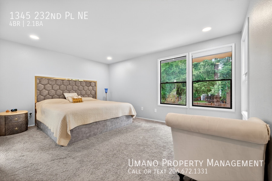 Location -- North end of the Sammamish Plateau on the east side of Lake Sammamish. Move in special! 2 to 4 weeks free rent depending on length of lease. 4 weeks free for a 18-month lease. 2 weeks free for a 12 to 14-month lease. This modern 2-story, four-bedroom (or three plus a bonus room) -- 2.5 baths, with a 2-car garage, is situated on a large, beautifully landscaped 15,000 sq. ft. lot. The nicely remodeled kitchen features a kitchen island, quartz counters, upscale appliances (including a Bosch dishwasher), and elegant white millwork. This home is nicely finished with wainscoting throughout. Additional highlights include beautiful hardwood floors on the first floor and carpet in the bedrooms. The living room has a gas fireplace insert. The home even has a brand-new roof. The expansive backyard offers a stamped concrete patio, an ironwood deck, a storage shed, a garden space, and multiple play areas—perfect for relaxing or entertaining. Conveniently located within walking distance to schools, parks, and shopping. The schools are a part of the highly regarded Lake Washington School District! This is a "No Smoking" property. Renters' insurance is required (minimum liability coverage of $500,000 -- which is normally less than $18 per month). Lease terms -- Minimum 14 to 18-month lease to start. Move-in funds required for qualified applicants are the first month's rent (prorated if the lease begins after the first day of the month), a refundable security deposit, and any additional deposits or monthly rent for parking or pets. No "last month's rent". Tenants pay for all utilities. Pet policy -- Two pet limit- (cats only, no dogs or exotic animals). Must be at least a year old, housebroken/litter box trained, spayed & neutered, have all required vaccinations, and with positive landlord references -- an additional deposit would be required. (Deposit $400 for one pet, $500 for two pets) -- Pet rent is $35 per month for one pet, $50 per month for two pets. Pets must be screened by going to There is a small fee for pet screening. There is no fee for verifiable "service animals". Our popular Residents Benefit Program is included in the monthly housing price. It provides many desirable benefits--including free Automated Clearing House (ACH) payments for rent (no checks required), $1000 accidental damage protection, free emergency overnight housing, security deposit review, free lock-out protection, and covers numerous other recurring charges. More benefits are coming to enhance your living experience. Check out our flyer or visit for more info. We do not offer video tours -- You (or someone representing you) need to personally view the property before you make an application. We are not located on-site, so schedule your private viewing at one of the convenient times listed. Please Note: Acceptance of property in “As Is Condition” -- If your acceptance of this property is conditional for other terms or property modifications, Do Not Make an Application until a mutual agreement and acceptance are entered into in writing with UMANO PROPERTY MANAGEMENT. This property is professionally managed by UMANO Property Management. Visit our company website at for more information.