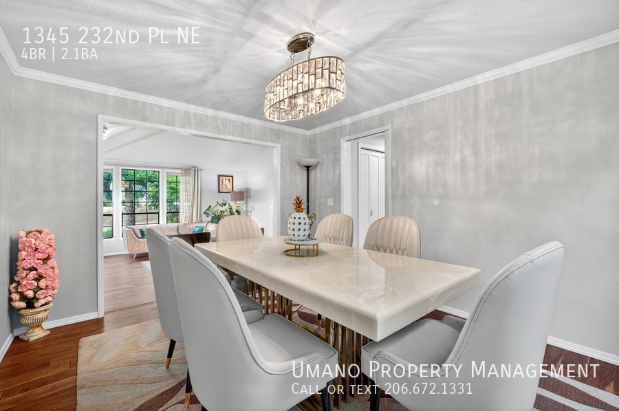 There is currently a 4 Bed 2 Bath Home for rent with 2,400 sq ft listed at 1345 232nd Pl NE. It is Available Now.
