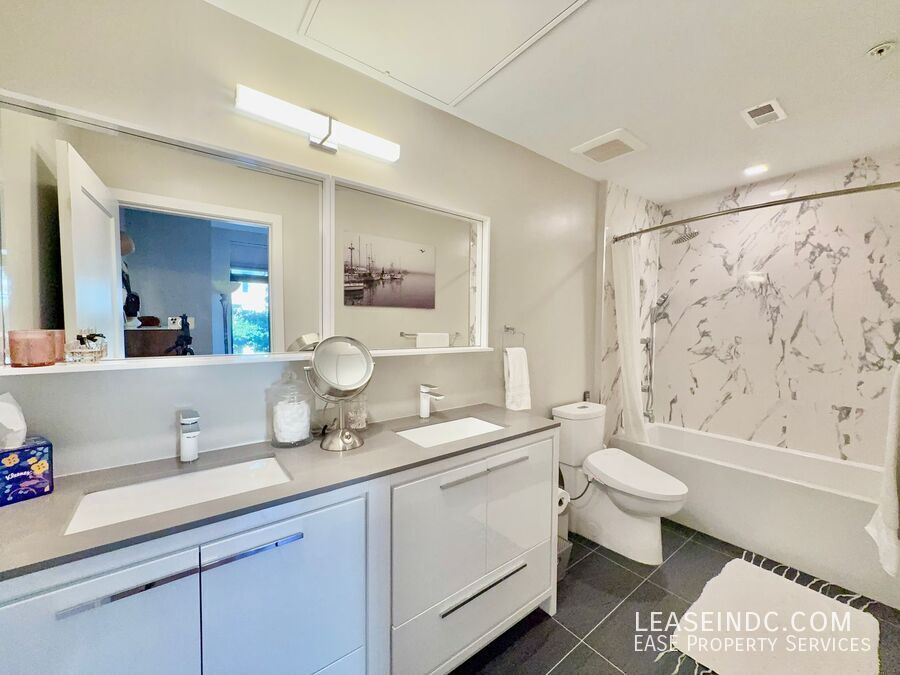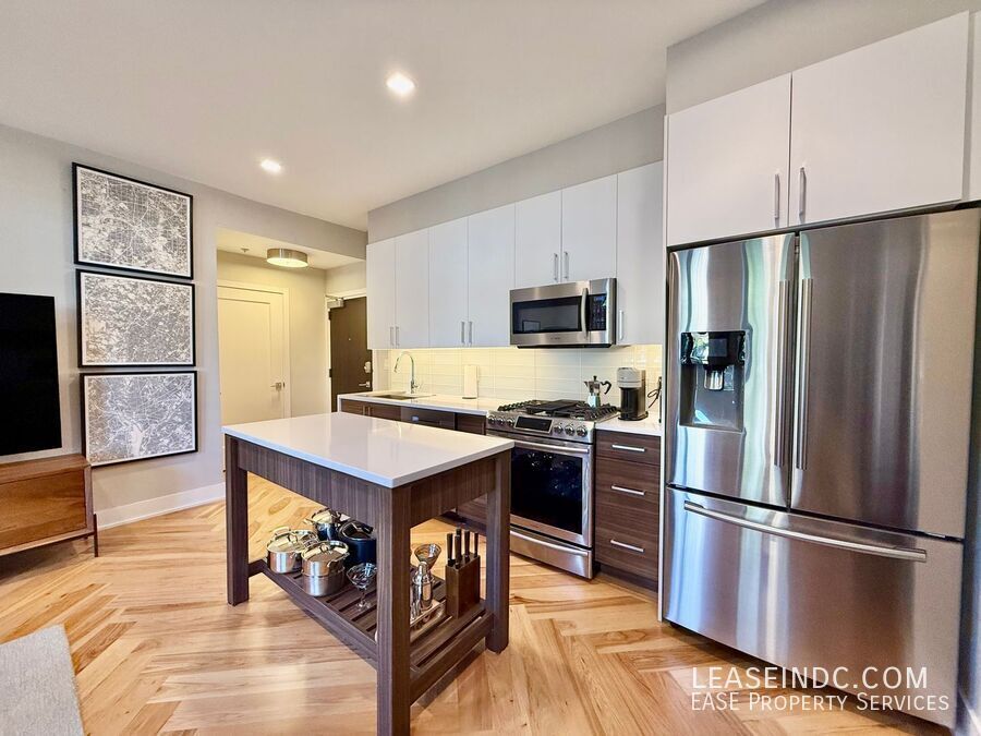 Welcome to 1345 K Street! This contemporary one-bedroom, one and a half bathroom condo, built in 2018, offers over 700 square feet of luxurious living space. Enjoy beautiful herringbone floors, designer finishes, and the convenience of off-street parking included in your rent! The building's rooftop terrace is perfect for relaxation, featuring a grill, comfortable seating, and breathtaking city views. Don’t miss out on making this stylish residence your new home! Apartment Features: Beautiful herringbone hardwood flooring throughout Open and light-filled main living area with oversized windows & custom blackout blinds Luxury kitchen with high-end stainless steel appliances, sleek Silestone countertops and movable island Convenient powder room off of entryway - a rare find in a one-bedroom unit! Good sized bedroom with a custom closet Ensuite primary bathroom with daul vanity, Porcelanosa tile and bidet Full sized washer/dryer in unit Extra storage unit in basement of building included in rent! Building Features: Secure ButterflyMx virtual entry system Large rooftop terrace with stunning city views Bicycle storage Parking: One private, off-street parking space included in rent. Utilities: Tenant is responsible for electricity. Water and gas are included in rent. Lease Terms: Available December 8th. Minimum 12 month lease. Application fee is $35 and includes a credit check. Security deposit equal to one month's rent due upon lease signing. Pets considered on a case-by-case basis pending approval by Owner. Tenant is responsible for $100 building move-in fee. Location: Incredible Capitol Hill location just a short walk to Potomac Ave Metro, Safeway, the critically acclaimed Roost Food Hall, Eastern Market, and much more! Easy access to 395/695 for commuters as well.