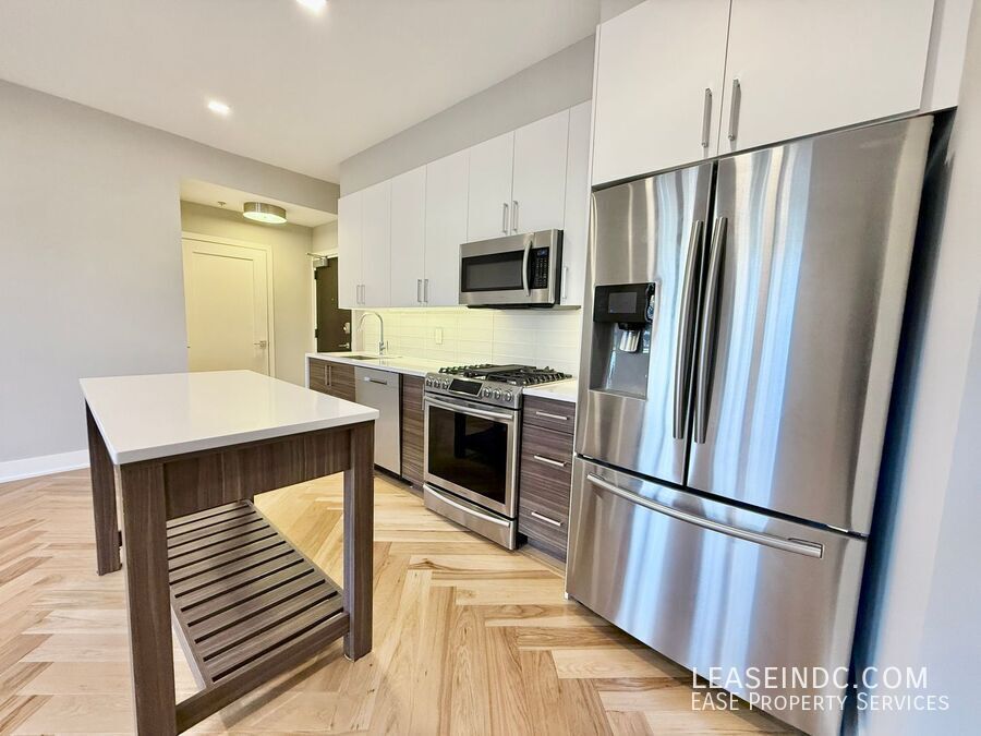 Welcome to 1345 K Street! This contemporary one-bedroom, one and a half bathroom condo, built in 2018, offers over 700 square feet of luxurious living space. Enjoy beautiful herringbone floors, designer finishes, and the convenience of off-street parking included in your rent! The building's rooftop terrace is perfect for relaxation, featuring a grill, comfortable seating, and breathtaking city views. Don’t miss out on making this stylish residence your new home! Apartment Features: Beautiful herringbone hardwood flooring throughout Open and light-filled main living area with oversized windows & custom blackout blinds Luxury kitchen with high-end stainless steel appliances, sleek Silestone countertops and movable island Convenient powder room off of entryway - a rare find in a one-bedroom unit! Good sized bedroom with a custom closet Ensuite primary bathroom with daul vanity, Porcelanosa tile and bidet Full sized washer/dryer in unit Extra storage unit in basement of building included in rent! Building Features: Secure ButterflyMx virtual entry system Large rooftop terrace with stunning city views Bicycle storage Parking: One private, off-street parking space included in rent. Utilities: Tenant is responsible for electricity. Water and gas are included in rent. Lease Terms: Available immediately. Minimum 12 month lease. Application fee is $35 and includes a credit check. Security deposit equal to one month's rent due upon lease signing. Pets considered on a case-by-case basis pending approval by Owner. Tenant is responsible for $100 building move-in fee. Location: Incredible Capitol Hill location just a short walk to Potomac Ave Metro, Safeway, the critically acclaimed Roost Food Hall, Eastern Market, and much more! Easy access to 395/695 for commuters as well.