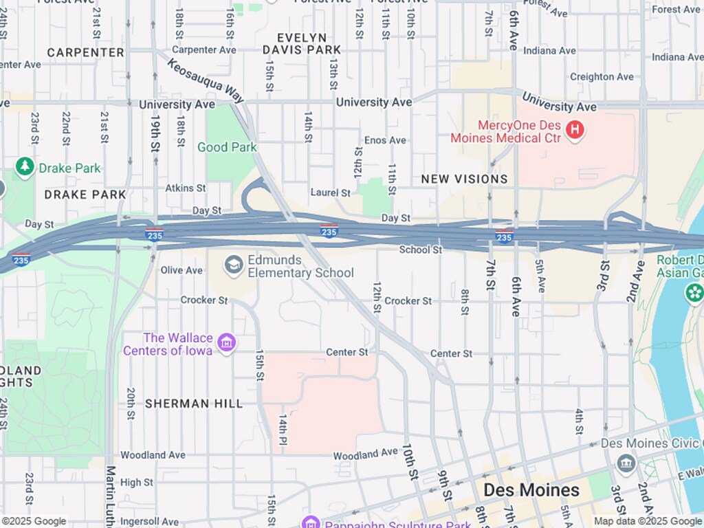 1345 Keosauqua Way has 5 parks within 5.0 miles, including Pappajohn Sculpture Park, Gray's Lake , Greenwood Park, James W. Cownie Soccer Complex, and Great Western Trail.