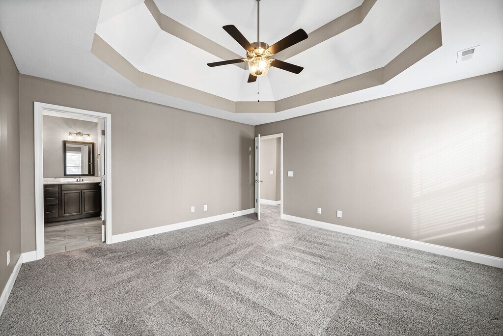 This like new three bedroom, two and a half bath home is conveniently located just minutes from restaurants, shopping, Fort Campbell, and more! The spacious living room is warm and inviting, featuring a cozy fireplace and built-in shelving! The eat in kitchen offers granite countertops, stainless steel appliances, plenty of cabinet space, and a breakfast bar! The primary suite includes its own private full bath with double vanities and a soaking tub/shower combination! Both guest bedrooms are generously sized! Upstairs, the bonus room features a door and a closet and could easily function as a fourth bedroom! Outside, enjoy great outdoor living with a covered deck and a fenced backyard! Pet Rent Scale - Dogs: $25.00 per month - Cats: $35.00 per month