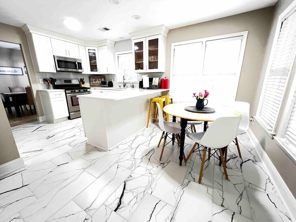 Welcome to this charming home located in the heart of North Metro Atlanta's suburbs, just minutes from the Infinite Energy Arena and a short 30-minute drive to Downtown Atlanta. This property offers easy access to I-85, making it a prime location for exploring local shops, restaurants, and markets offering diverse ethnic cuisines and groceries. The house features four dedicated bedrooms and a spacious bonus room downstairs, along with a cozy kitchen, a large back deck, and a backyard perfect for entertaining. The house is equipped with a cozy kitchen and includes a washer and dryer for your convenience. While the kitchen may not be fully equipped to the standards of your own home, it is stocked with basic kitchenware to prepare simple meals. Long-term guests are welcome to bring additional cookware to make it their own. Extra bedding sheets for air mattresses and bath towels are provided for parties of eight or more guests or available upon prior request at booking. Mid-stay cleaning services can be requested for an additional fee. If approved, small pets under 25 lbs are welcome with a nonrefundable pet fee of $150 per pet per stay, with a maximum of two pets allowed. Situated in a nice and safe neighborhood, this home is equipped with exterior cameras for added security without intruding on your privacy. The location is ideal for those attending events at the Infinite Energy Arena, with a simple and quick commute. Enjoy the convenience of nearby local eateries and markets, as well as easy highway access for trips to Downtown Atlanta. Check-in is at 4 pm, and check-out is strictly at 10 am, with a penalty fee of half the night’s stay for late check-out. Smoking, including electronic cigarettes, is prohibited inside or outside within 10 ft of the property, with a $250 cleaning charge for violations. No loud noise, parties, or events are allowed, and the maximum capacity is 10 people. Unregistered guests will incur an additional charge of $50 per guest per night. Please do not park any car on the street after 9 pm, with a maximum of four standard-size cars allowed on the premises. The property is pet-free unless prior authorization is given, and a pet policy must be agreed upon before check-in. The house is equipped with cameras outside for security purposes, and guests are expected to respect community guidelines and keep the property clean. Any violation of house rules may result in immediate cancellation of the reservation without a refund. [SI]