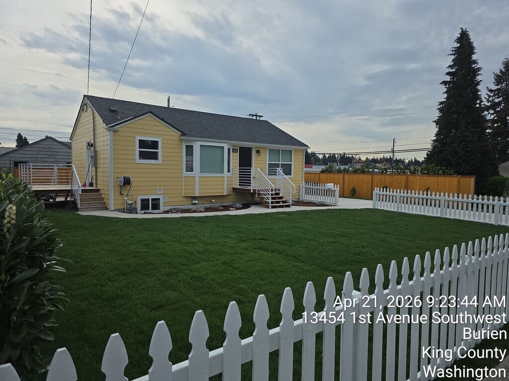 Welcome home to this light and bright newly remodeled daylight rambler home located on a corner lot, Ready for move in now!! Everything is brand new! The home is on a fully fenced lot with new landscaping. The main entry is a custom deck with metal railing to invite you into the home. Enter the living area, it offers an electric fireplace and LED ceiling fan and a large window for lots of natural light. The dining/breakfast area is attached to the new remodeled kitchen. A great kitchen with solid countertops and new cabinets and appliances great space for the chef of the home. A great back door to the side deck with a patio for BBQ's and entertainment. Two bedrooms on the main floor and a remodeled bathroom with a beautiful shower ready for use! The lower floor offers the laundry area with new Washer/Dryer full size and a utility sink and storage. Recreation room with door to the back area. A full primary bedroom with walk in closet - large for a King size bed. A full bathroom with double sinks, full shower and great LED mirrors. New furnace and hot water tank. Shed for storage. Off street parking for 4 cars in the driveway - No Mechanic work allowed on property, Street parking as well. Fenced yard with new sod and bark/rocks. Please drive by the location, confirm you like the area and are ready for a showing, call the Fletcher Group for an appointment: Yana or DeNeil . TERMS: 12-month Lease. First Month's Rent and Deposit to move in. pets are considered case by case with $500.00 deposit. No smoking or vaping allowed. $40 application fee per adult to apply. Apply on line at Please note that if you apply online the application fee is charged immediately and is non-refundable. Do not apply until you have seen the property and have spoken with me directly. Please drive by first then call to check availability and schedule an appointment to view. If you like the location, contact DeNeil Or Yana to schedule viewing. Dawnette Fletcher, Property Manager Windermere Property Management/WPM South, LLC 13106 SE 240th Street, Suite 200 Kent, WA 98031 Email: Cell: Office: Leasing Cell (DeNeil): Leasing Cell (Yana):