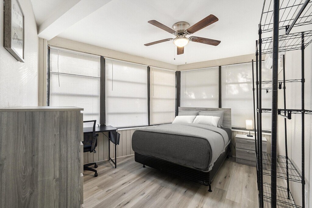 Room for rent: Your new home awaits! This comfortable Clearwater home is waiting for you. This PadSplit has a Patio or porch and Workspace, and it’s newly-renovated and spacious. 15 minutes from the beach! Quiet and secluded neighborhood. The kitchen comes equipped with a fridge, sink, oven, stovetop, as well as basic cookware. The neighborhood is near highways, which means you won’t be far from all Clearwater has to offer.