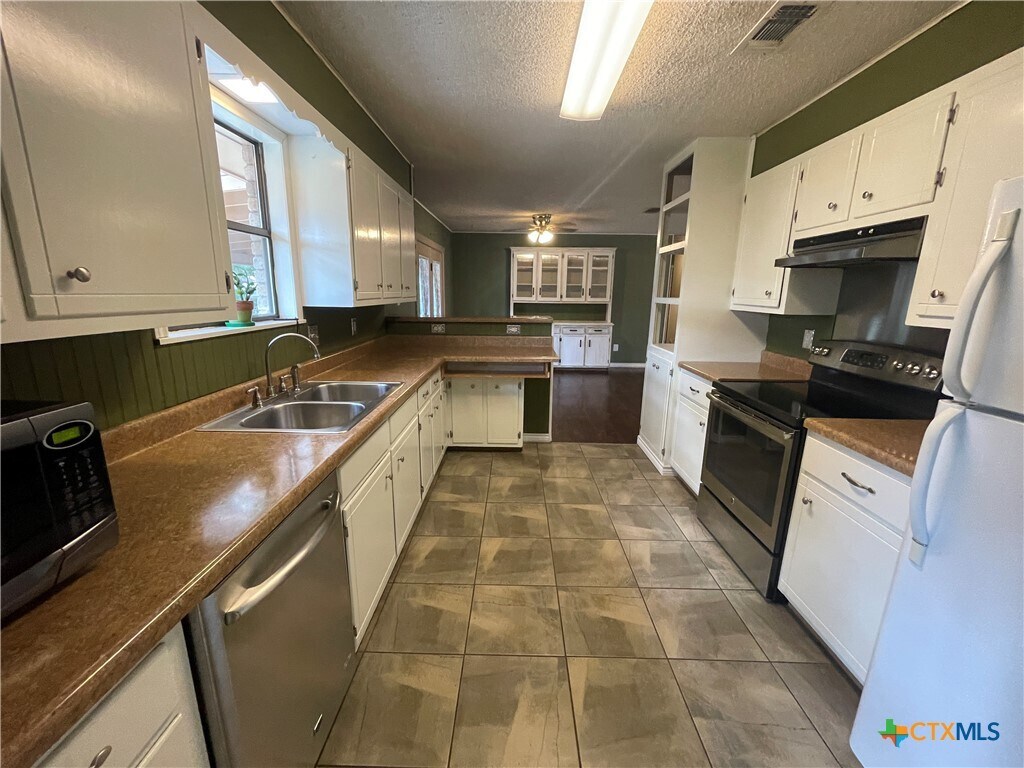 Charming and full of character,this 2-bedroom,2-bathroom home is ideally located just minutes from the heart of Gruene. Inside,you'll find a warm and inviting living area featuring a wood-burning fireplace — perfect for relaxing evenings. The spacious kitchen offers generous countertop space,ample cabinetry,and modern appliances,all complemented by natural light and a functional layout. Just off the kitchen,a dedicated laundry room includes a washer,dryer,utility sink,and additional built-in storage. Both bedrooms are comfortably sized with great natural light and soft carpeting,and one includes a built-in desk area — ideal for working from home,studying,or creative projects. Outside,the property offers even more versatility with a garage that includes a built-in workbench,perfect for hobbies or weekend projects,as well as a separate storage building in the backyard for tools,equipment,or extra space. Complete with a chicken coop & garden area. Nestled in a quiet,established neighborhood with mature trees. Close to Gruene’s shops,dining,and entertainment,this home offers the perfect blend of comfort,convenience,and charm. Pets are a case by case basis. Renters insurance required. Lawn care & utilities tenant responsibility.
