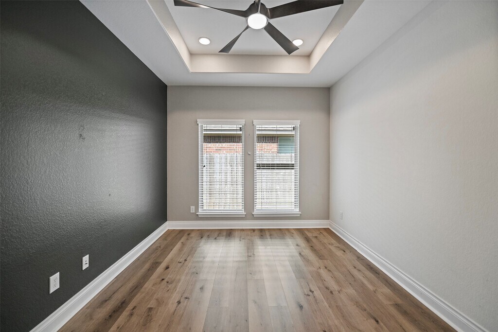 Beautiful single story home available for move in this month. Available for showing on 2/16/2026. Located in the Brazos Town Center near walking trails and duck pond. This four bedroom,3 bath home has a stacked stone and brick exterior and vaulted roof lines. The entry opens up to a wide hallway with 14' ceilings. Large entertainment area opens up to the kitchen with its waterfall quartz countertop and 42" cabinets. Cascade of natural lighting from the large windows along back of home. Covered patio is perfect for BBQs and family gatherings. Master bedroom,bathroom,and closet are spacious. Refrigerator,washer,and dryer are included. Whole-home security system with video and monitoring available. Close to shopping,groceries,restaurants and 59 Freeway. MLS# 84916413