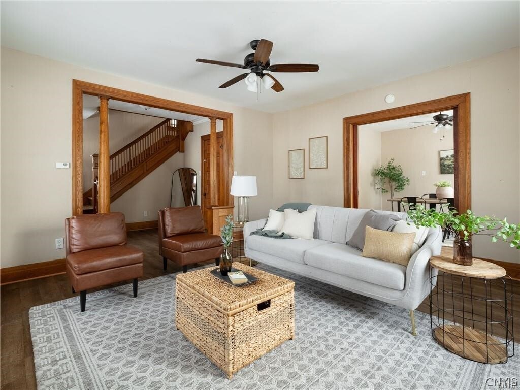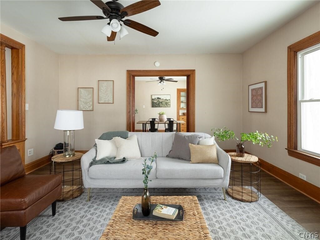 Charming 19th-Century Gem with Modern Upgrades in Adams Center! Experience a perfect blend of historic character and contemporary comfort in this spacious 4-bedroom,2-bathroom home (built 1870). Highlights include stunning original woodwork,gleaming floors,and a showstopper remodeled kitchen with butcher block countertops and stainless appliances. Key Features are its Layout- 1st-floor laundry/full bath; 4 versatile upstairs rooms + second full bath. Storage- walk-up attic and basement. Outdoor- Fully fenced-in backyard and 1-stall garage. Location- Highly regarded South Jefferson School District,easy commute to Fort Drum and Watertown. Requirements,Application fee,credit,and background check,Security Deposit equal to first month’s rent and Pet fee. Terms,No smoking,No utilities included. This property is also for sale (MLS #S1662154). Don’t miss this historic beauty!