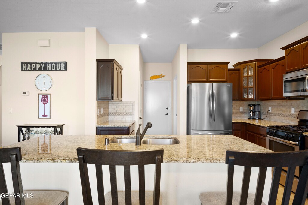 Step into this inviting 3-bedroom,loft,2 and a half bath home featuring an open-concept layout and tasteful designer touches throughout. All bedrooms located upstairs. The kitchen offers granite countertops,a spacious island,tile backsplash,and pantry,perfect for both everyday living and entertaining. Granite continues into both bathrooms,complementing the home's modern fixtures and finishes. Centrally located just off Eastlake Blvd. in the desirable Paseos at Mission Ridge subdivision,this home is minutes from Eastlake High School,Loop 375,I-10,and Ft. Bliss. You'll also be near the area's rapidly growing selection of new restaurants,shopping centers,parks,and scenic walking trails. This is a great value in a vibrant and expanding community. PMI residents are enrolled in the Resident Benefits Package (RBP)which includes HVAC air filter delivery,utility concierge service making utility connection a breeze during your move-in,our best-in-class rewards program,& more! With renters' insurance.