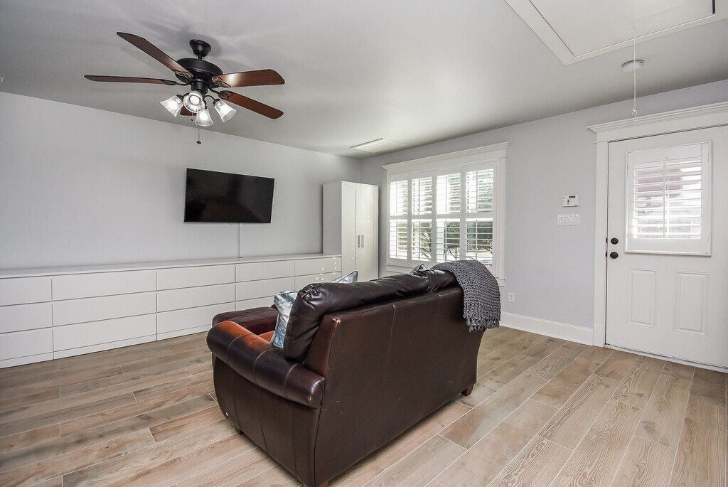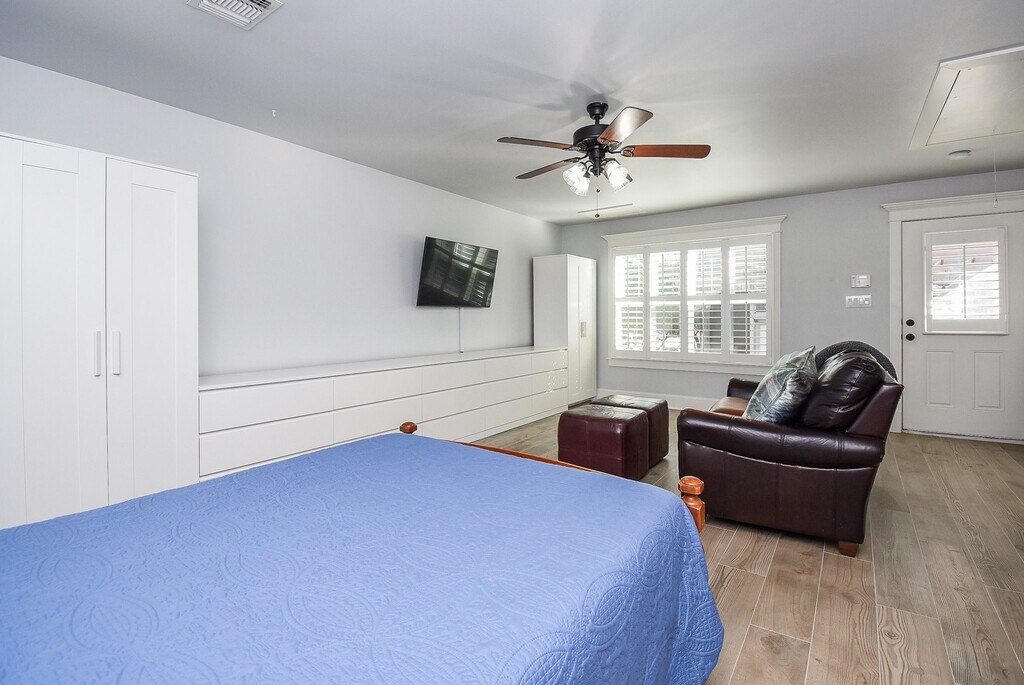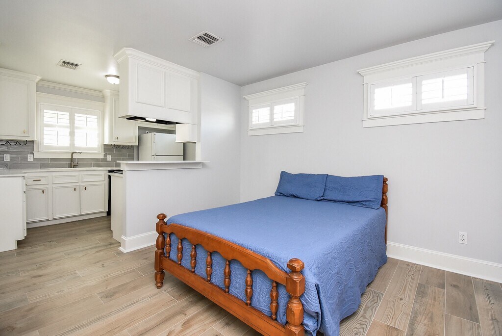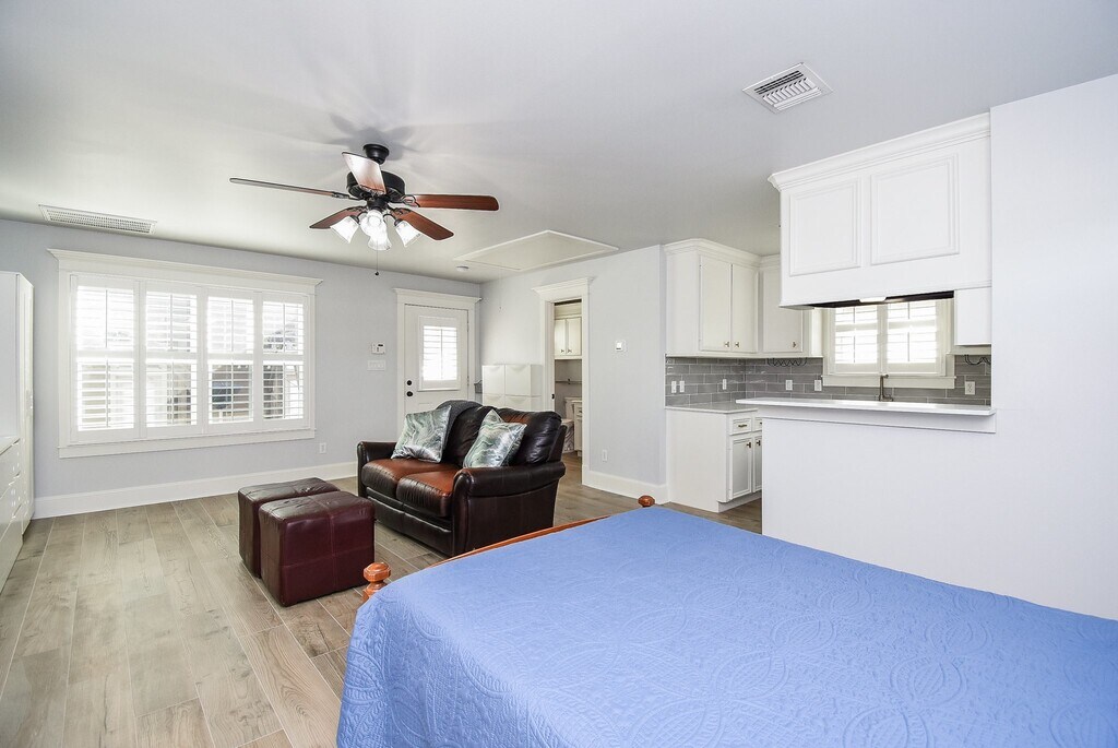 Tucked behind gated,controlled access on iconic Heights Boulevard,this private 1 bed,1 bath garage apartment offers charm,comfort,and true walkability in one of Houston’s most sought-after neighborhoods. Detached from the main residence,the studio feels quiet and secluded while still placing you in the heart of the Heights. Inside,natural light fills a thoughtfully designed open layout with plantation shutters and a clean,modern aesthetic. The space flows easily between living,dining,and sleeping areas for comfortable everyday living. The kitchen features white shaker cabinetry,marble countertops,subway tile backsplash,electric range,dishwasher,refrigerator,and a pass-through breakfast bar to the living area. The bathroom includes a vanity,tiled tub and shower combination,and built-in storage. Enjoy peaceful living at home or step out to nearby trails,dining,and neighborhood favorites from this well-maintained Heights garage apartment. MLS# 23014291