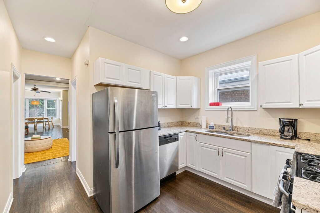 Welcome to your home away from home in the heart of Chicago! This freshly updated 2-bedroom, 1-bathroom unit is perfect for couples, families, or small groups looking to enjoy a comfortable stay in the Windy City. Located on the first floor of a brick walk-up, the apartment features a queen bed, a full bed, and a sleeper sofa to comfortably sleep six. Enjoy a modern kitchen, a bright bathroom, a cozy living area, and a dining nook with great natural light. Relax on the back deck or explore nearby Logan Square. This thoughtfully updated apartment blends classic Chicago charm with modern comfort. The space features a fully stocked kitchen, a cozy living room, and a bright dining nook surrounded by windows. Perfect for couples, families, or small groups, with a queen bed, a full bed, and a sleeper sofa to accommodate up to six guests. Enjoy free street parking and easy access to nearby parks, restaurants, and public transit—all from a quiet residential neighborhood. Registration Number: R2 [SI]