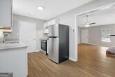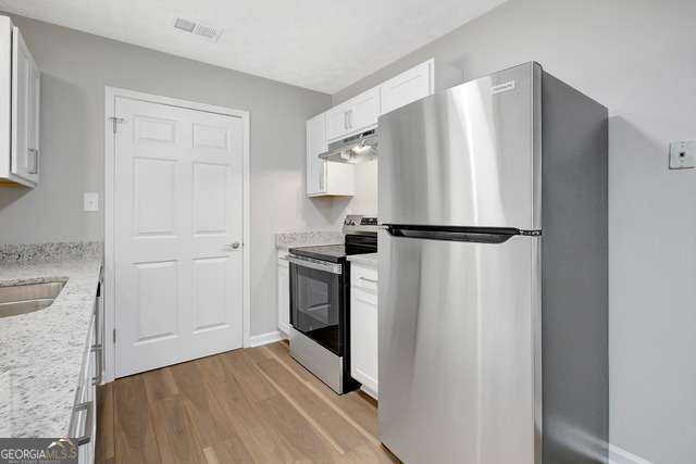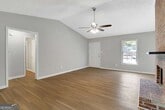 Beautifully updated 2 bed/1.5 bath unit featuring granite countertops, stainless steel appliances, and LVP flooring throughout. Spacious floor plan with large bedrooms, generous closets, and a working fireplace. Washer and dryer included. Fenced in yard and lawn care provided. Enjoy a private patio and plenty of parking. Conveniently located minutes from Downtown Fayetteville, Trilith, schools, shopping, restaurants, and entertainment. Move-in ready and easy to show!