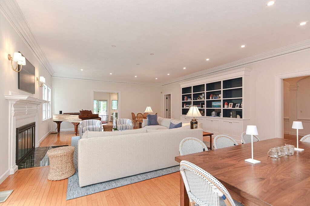 Available now to early June. Elegant updated furnished home with blend of classic New England charm and modern convenience.Spacious verandah leads to center entrance hallway with sweeping staircase.Lightfilled living room with French doors to side deck,wood fireplace,and dining area.Just renovated large eat-in kitchen.with state of the art appliances,oversized refrigerator. separate freezer,gas stove,new countertops,and ample storage space. Dine on the porch overlooking Winthrop Field (sightings of deer and bald eagles.). Also on this level is a billiard room,home office/study with built in floor-to-ceiling bookshelves and views,den,full bath and a half bath. Upstairs are 4 bedrooms (2 with ensuite baths,) 4,5 baths,laundry room with washer/dryer,and finished attic. Two king bedrooms. Abundance of closet space with two dressing areas. Other bedrooms have 2 queens and 2 fulls.Gas heat,A/C,firepit,outdoor shower. Renter pays utilities. MLS# 73419301