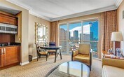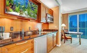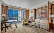 On the 22nd floor of The Signature at MGM Grand, nestled high above the dazzling lights of Las Vegas, lies a penthouse condo featuring a terrace with views of the mountains and the Las Vegas Strip! This fully furnished condo is elegantly designed to provide comfort and sophistication. The Kitchenette boasts stainless steel appliances and granite counter tops! The primary bathroom features a walk-in shower and a jetted bathtub where you can unwind after a day of exploring the vibrant city! Residents of this exclusive penthouse enjoy access to a host of world-class amenities! Dive into one of the sparkling pools or maintain your fitness routine at the state-of-the-art fitness centers. With concierge services and valet parking, your every need is catered to with exceptional care. The Signature at MGM Grand also offers a prime location, placing you just moments away from the excitement of the Las Vegas Strip! Indulge in fine dining, upscale shopping and entertainment, all within reach!