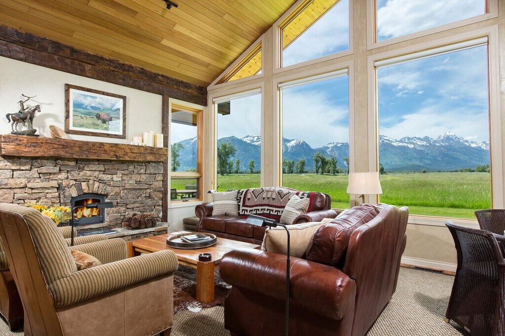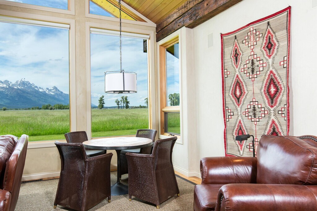 Available: 1 month lease options. Contact our office for available dates. 4 bed/4 bath house in Bar B Bar. Sleeps 12. Unobstructed views of Grand Tetons. Private hot tub with mountain views. Board games, video game system, outdoor yard games, 2 bicycles included. Property has a 30 night minimum. NS/NP W/D The Woodreed home provides an amazing view of the Grand Teton Mountain Range, convenience to Grand Teton National Park and the town of Jackson. If you enjoy golfing, Woodreed is minutes from the Jackson Hole Golf & Tennis Club. Enjoy a glass of wine from the new hot tub while taking in the expansive view of the Jackson Hole valley. Fire up the BBQ grill and rest on the deck while gazing across the valley. Wildlife abounds at this location. Elk and buffalo frequently pass through the area. Located only 10 minutes from the airport, 15 minutes to Moose, WY or town for an enjoyable lunch. 30 NIGHT MINIMUM NS/NP W/D Google maps and VRBO have this property listed as 4.5 miles from JH Mtn. Resort. The driving distance is actually about 19 miles, as there is not an access road directly across the Snake River. The Woodreed home will accommodate a business group or families with its west wing and east wing suites and entrances. Two separate decks for the guest suite and master suite. Three separate sitting areas encourage conversation for different groups, while still being able to mingle easily. Have friendly game of corn-hole while you breathe in our fresh mountain air. Board games and puzzles are available for relaxing evening after a long hike or save them for a rainy afternoon while you watch the storm roll over the mountain and across the valley. If you need to conduct business while on vacation, the living room desk with printer/fax allows you to enjoy the Teton views as well. Woodreed has been newly remodeled to provide 4 bedrooms, and 4 bathrooms. There is plenty of space for your family and friends.