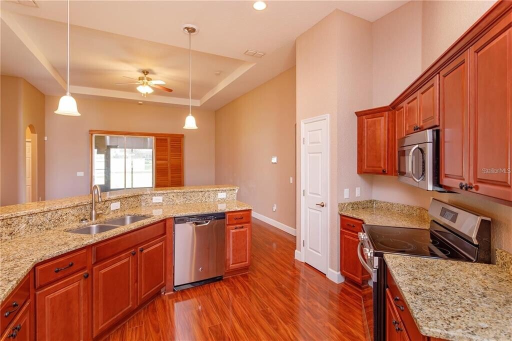 Stunning 3-bedroom,2-bathroom single-story home offering 1,866 square feet of comfortable living space on a spacious 1/4 acre lot in Winter Haven,FL. This meticulously maintained residence is packed with features designed for both comfort and style. The gourmet kitchen is well designed for organization with granite countertops,built-in sliding drawers,and sleek stainless steel appliances. Throughout the home,you'll find elegant tray ceilings that add a touch of sophistication to the living spaces. For your peace of mind,the property is equipped with an ADT security system and a state-of-the-art Ultraviolet AC Air Purification Scrubber system,ensuring the cleanest indoor air quality for you and your family. The living area opens up to a COZY SCREENED LANAI complete with sliding windows,making it the perfect spot for year-round relaxation. Step outside to discover an entertainer's dream outdoor space featuring an EXTENDED PAVER PATIO with an elevated grilling station. The FULLY FENCED YARD provides privacy. Located in the quiet Eloise Oaks neighborhood,this home offers ACCESS TO LAKE ELOISE,one of many lakes in the renowned Winter Haven Chain of Lakes. You'll be just minutes from LEGOLAND Florida Resort and perfectly positioned between Florida's beautiful east and west coasts as well as the Orlando attractions. This exceptional home combines comfort,style,and an unbeatable location. Schedule your showing today! MLS# L4956806