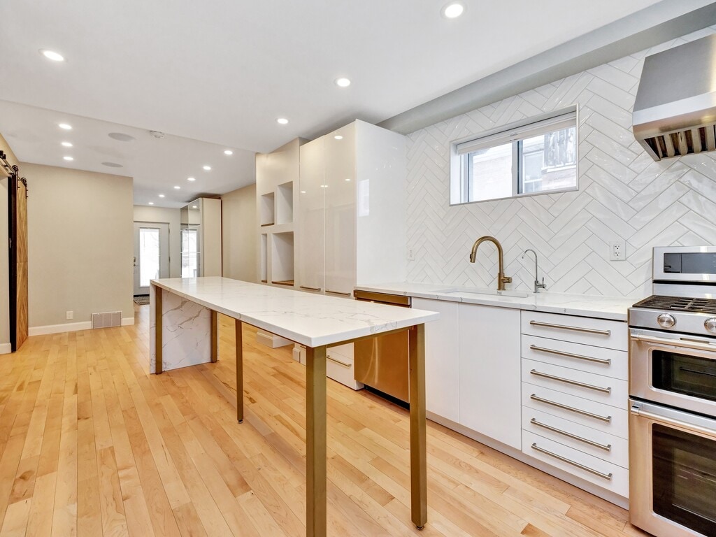 1-135 HINCHEY AVE, is located in the neighbourhood of Mechanicsville in Kitchissippi Ward in central Ottawa, Ontario, Canada. This is the main floor (ground floor) unit of a legal duplex (two storey house). It is located to the west of downtown and bordered by the Ottawa River to the north, the O-Train Trillium Line (Light Rail Transit) to the east, Scott Street to the south, and Parkdale Avenue to the west. Enjoy nearby beaches and the SJAM trail for recreation while having easy access to great local stores and restaurants. The Suite is renovated with top of the line finishes. Features include: Two bedrooms, custom closets, maple hardwood flooring, quartz countertops, oversized bathroom vanity with LED backlight mirror, heated bathroom floor, dual thermostatic shower heads. High end stainless steel appliances including oversized chef fridge & freezer combo complete with ice maker. Gas Stove top with dual electric oven combined with high efficiency hood fan is perfect for cooking. Custom sliding doors throughout along with in-suite laundry and space for a home office. Heating included. Professionally landscaped backyard includes covered deck area perfect for working and dining outside, deck flows down to flagstone courtyard with ample space for bicycle parking in a secure backyard. Ideal location to relax, BBQ and enjoy the sun! Contact to schedule a viewing.