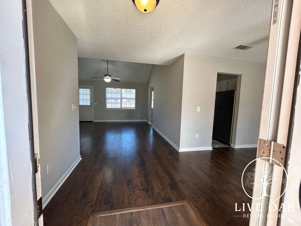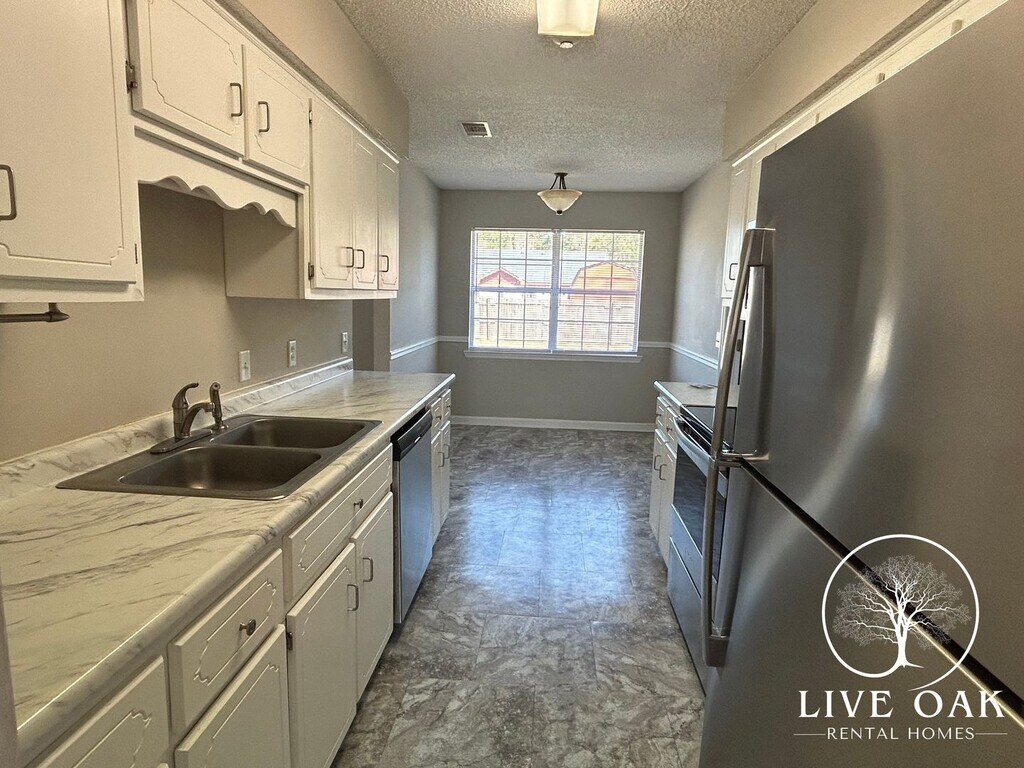 Charming 3-bedroom, 2-bath, single-story ranch-style brick home offering 1,433 square feet of comfortable living space. Step inside to a welcoming living room featuring a vaulted ceiling that adds an open, airy feel. The galley-style eat-in kitchen comes equipped with a stove/oven, refrigerator, microwave, dishwasher, and ample cabinetry for storage and everyday convenience. A separate dining room provides the perfect space for hosting or family meals. The primary bedroom includes a walk-in closet, while a designated laundry room offers washer and dryer connections. Enjoy outdoor living in the fully fenced backyard, along with the convenience of a one-car garage. Located in the Smiley Woods subdivision of Long County, this home is just minutes from downtown Hinesville, Fort Stewart, and a variety of shopping, dining, and grocery options—combining comfort, space, and an ideal location. Pet friendly!* (*One time, non-refundable $250 pet fee may apply, per pet, 2 pets limit). Note: this property is managed by Live Oak Rental Homes, a sister company of True South Rentals.