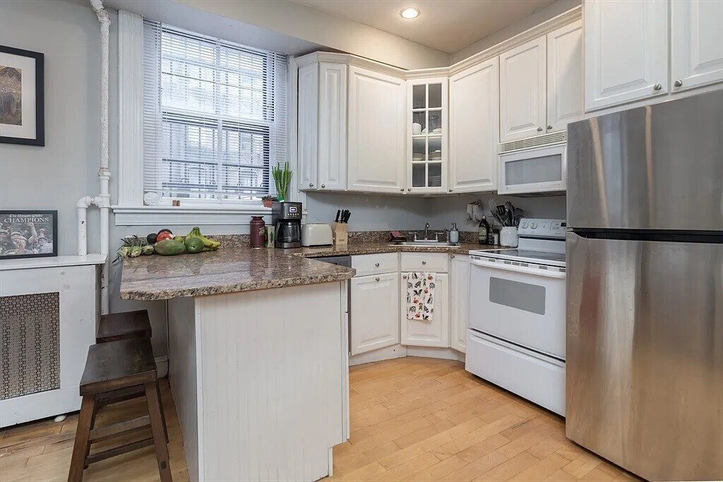 Nested in the heart of Boston's historic Back Bay, this spacious 1 bed features high ceilings, custom fireplace and hardwood floors throughout. Fantastic open layout with dishwasher/disposal, built-in microwave and breakfast bar. Spacious bedroom, large front hall closet and updated bath with linen closet and tub. Common laundry steps away and additional deeded storage. Recently renovated common areas and new appliances top off this amazing home. Professionally managed association situated close to the Charles River Esplanade, Public Gardens, Newbury Street and all of Back Bay's shopping and dining destinations