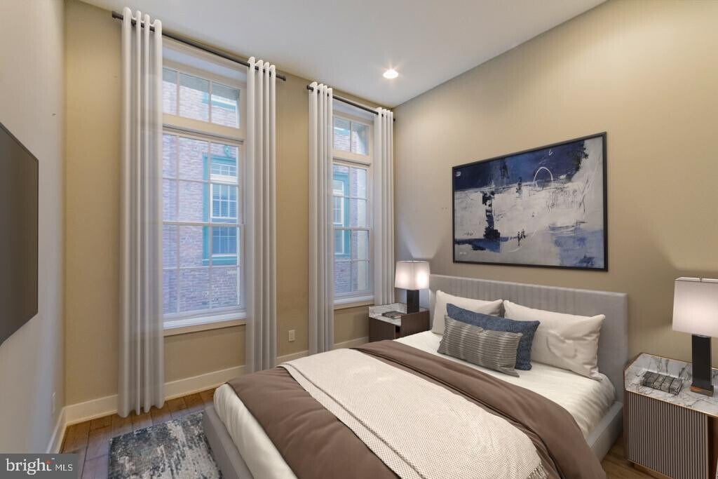*Available NOW!* A beautifully bright 2 bedroom, 1 bathroom apartment in the heart of Old City! This unit has everything: central air/heat, washer/dryer in unit, hardwood floors throughout, recessed lighting, as well as a common bike rack, designated storage, private trash collection and an elevator in the building! The open living room and kitchen features two large windows, granite counter tops with a breakfast bar, plenty of cabinet space, stainless steel dishwasher, microwave, refrigerator and electric range. The first bedroom is located off the living room and includes two more large windows and a double closet. The second bedroom, located on the other side of the kitchen, includes a double closet and a small window of diffused light from the living room (you know, for those light sleepers). The full bathroom is modern with bright white tile and a floating vanity. You'll be within minutes of Philadelphia's most popular historic attractions such as Elfreth's Alley, the Betsy Ross House, Independence Mall as well as some of the best bars, restaurants, galleries and retail in the City! Lease Terms: Generally, 1st month, and 1 month security deposit due at, or prior to, lease signing. Other terms may be required by Landlord such as last month’s rent upfront. $65 application fee per applicant. electricity, gas (if applicable), cable/internet and $10/mo technology fee. Water is a flat monthly fee of $75. $25 service fee plus cost of the air filter will be charged quarterly for routine air filter replacement. Landlord Requirements: Applicants to make 3x the monthly rent in verifiable gross income, credit history to be considered, no evictions within the past 5 years, and must have a verifiable rental history with on-time rental payments. Exceptions to this criteria may exist under the law and will be considered. Cosigners will be considered. *Price reflects the net effective rent after a 1-month credit is applied on a 14-month lease at $1,935/mo. *Sorry, no pets.