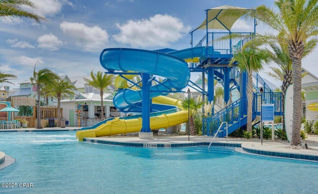 Situated in the heart of Margaritaville Beach Cottage Resort! This beautiful beach cottage delivers a carefree, resort-style lifestyle. It is steps away from resort amenities, including an expansive oasis-style pool, waterslides, lazy river, and poolside bar and grill with full-service dining. A short stroll leads to 580 feet of dedicated sugar-white sand beach and the emerald waters of the Gulf. Onsite amenities included the License to Chill Restaurant, a state-of-the-art fitness center, and a family-friendly arcade. The cottage's open-concept floor plan offers abundant natural light and coastal-inspired interiors. The property comes FULLY FURNISHED. The open kitchen features a striking oversized quartz island, ideal for entertaining. The main-level has a primary suite with large en suite bathroom with double vanity. The expansive great room opens directly to a private six-person hot tub, offering a peaceful retreat after a day at the beach. Multiple patios offer great outdoor living & dining spaces to relax and enjoy the ocean breeze...The Resort Cottage offers a laid-back coastal lifestyle inspired by the island vibes of Jimmy Buffett's Margaritaville. This charming resort-style community provides residents with a relaxing retreat just steps from the Gulf of Mexico's pristine white-sand beaches and turquoise waters. With a peaceful tropical atmosphere the neighborhood is designed for those seeking a carefree, beachside experience. Margaritaville Cottages consists of colorful,Key West-style homes with modern finishes and open floorplans. The community is well-maintained and offers resort-style amenities, including a lagoon-style pool, a fitness center, and on-site dining and entertainment. Conveniently located near popular attractions such as Top Golf and popular Pier Park with an abundance of shopping and dining options. Margaritaville Cottages provide easy access to everything Panama City Beach has to offer. These homes deliver a laid-back, yet luxurious, beach lifestyle.