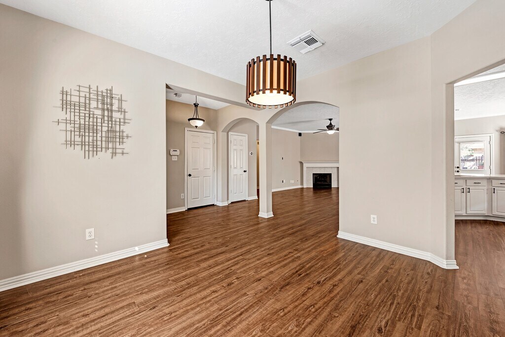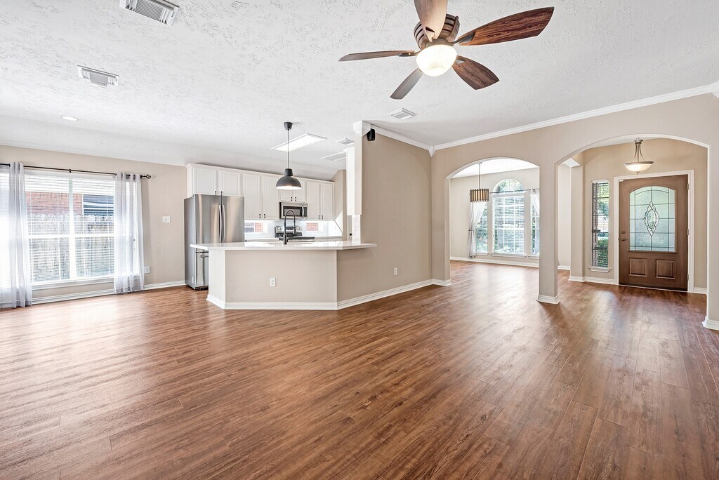Spacious single-story home with an open floor plan on an oversized rear deck. Family room with gas log fireplace,and custom built-in entertainment center. The kitchen features ample cabinet space and has a portable island. Attached to the master bedroom is a custom study with french doors. The house includes a washer,dryer & refrigeration. It has easy access to I-45,Windvale Park,the area pool,and shopping. MLS# 90358424