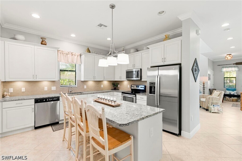 Welcome to 1350 Kendari Terrace in Artesia. This quality-built WCI home is the epitome of the Naples lifestyle,offering 3 spacious bedrooms,2.5 baths,and a 2-car garage. The heart of the home is a gourmet kitchen eaturing sleek cabinetry with soft-close doors,premium granite countertops,and a large island perfect for ntertaining. The light-filled open layout flows seamlessly to the oversized screened lanai,where you can enjoy peaceful lake vistas and the gentle Florida breeze in total privacy. Residents enjoy an award-winning 9,215 sq. ft. clubhouse,resortstyle pool,fitness center,theater,and more. Located in a low-maintenance,gated community nestled between the luxury of downtown Naples and the relaxation of Marco Island. Meticulously cared for and ready for immediate occupancy—experience the perfect blend of style and serenity.