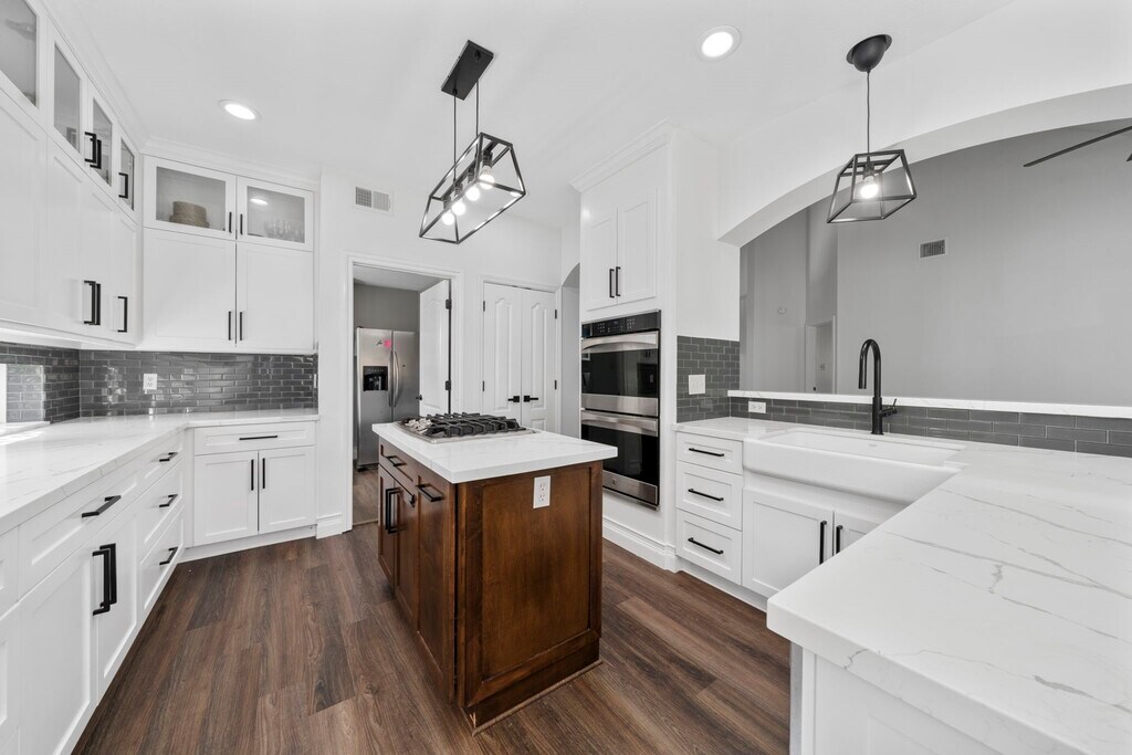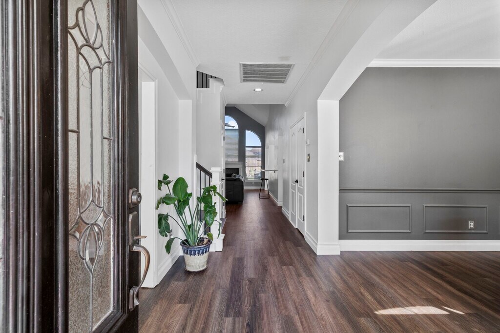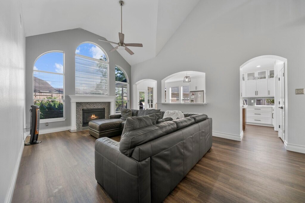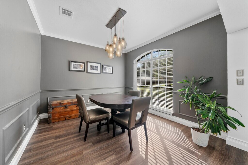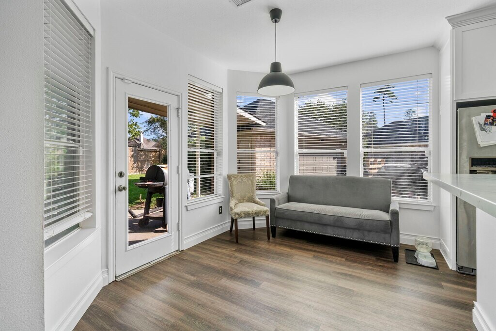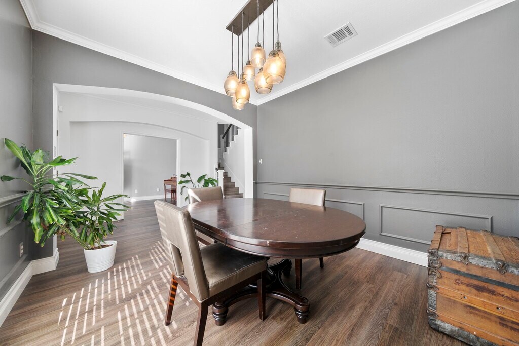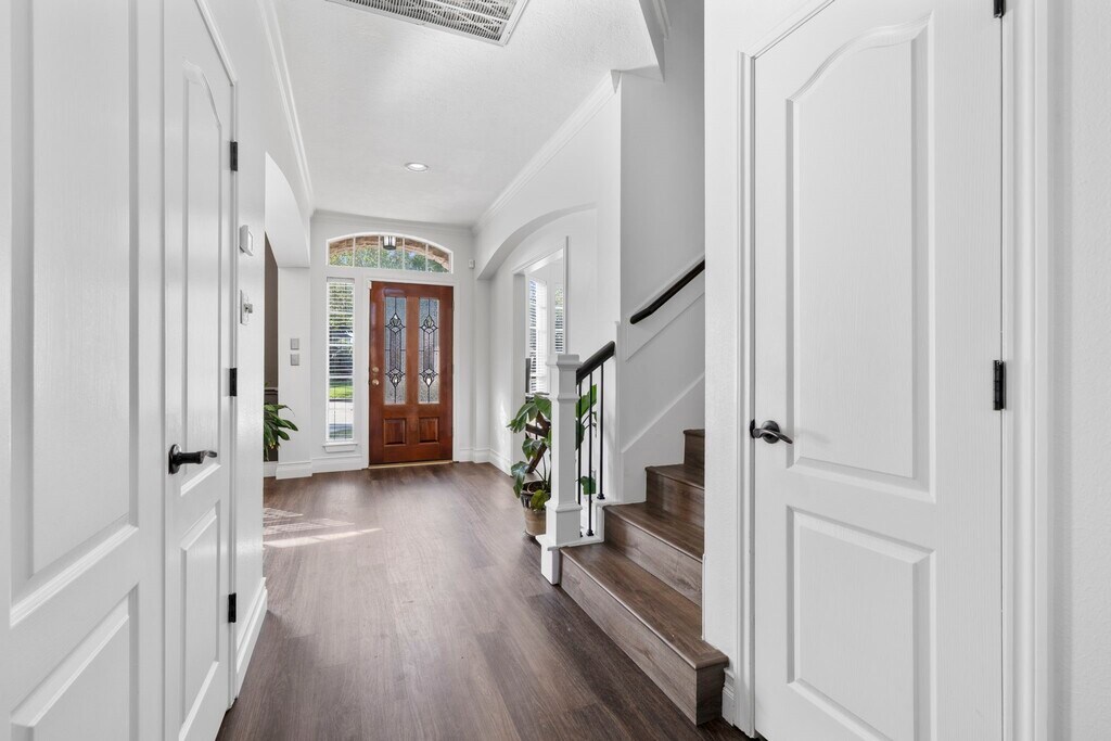Welcome to this stunning 4-bed,3 bath featuring a 1 year old roof and upstairs HAVC,NEW LVP wood floors throughout,crown molding,and a spacious living area with built-in shelving,a fireplace with stone and wood surround. The upgraded kitchen boasts granite counters,a gas stove with center island,double ovens,and a farmhouse deep sink. Adjacent breakfast nook creates a cozy space. The primary suite offers a charming window nook and a beautiful chandelier. The en-suite bath features a jet tub,separate shower,dual sinks,and a spacious walk-in closet with shelving. A dedicated office with chandelier and recent paint adds flexibility to the home,while a half bath and under-stairs closet provide added convenience. Enjoy the outdoors in a fully fenced backyard with a cement patio,fish pond,and mature trees. The detached 2-car garage includes a generator plug and extra driveway space. Laundry room features built-in storage,and a pantry with a small window completes the layout. MLS# 66914544