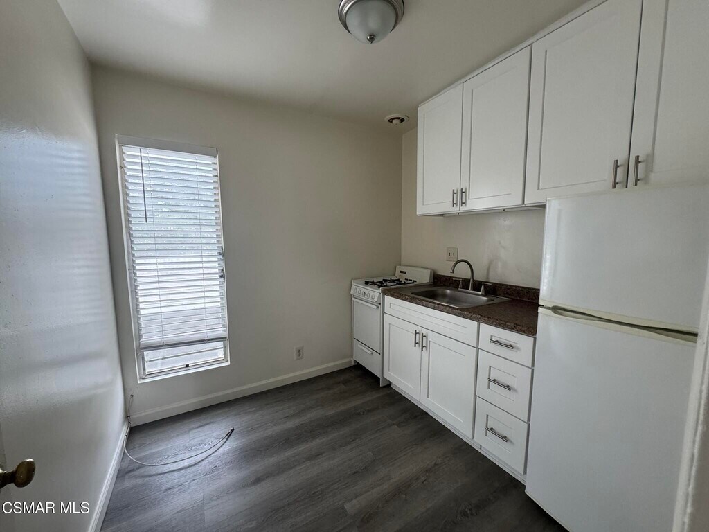 Spacious second floor studio apartment located in a secured gated complex in the Valley Glen area of Van Nuys! New paint, newer flooring. Walk into the large open living space. Separate kitchen area with small breakfast nook. Large closet that leads to the bathroom with single vanity and tub/shower combo. Large balcony accessible via slider looks over the open center courtyard. Private gated parking area with 1 assigned covered parking spot. Refrigerator included. Wall A/C. Communal Laundry room. Gas, Water, and Trash are included.