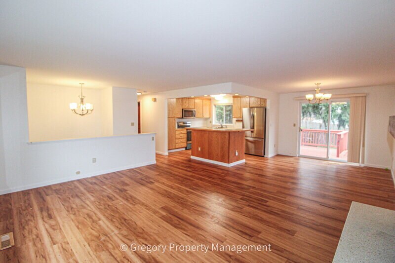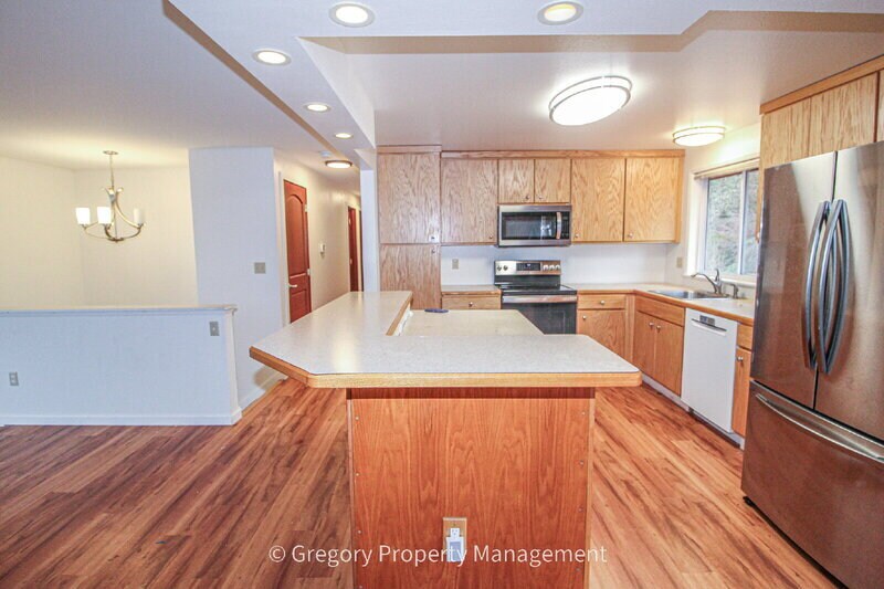 Beautiful and bright split level home located in with a spacious floorplan that offers a great separation of spaces. Featuring an oversized two car garage, tons of parking, a large Deck and a large, fully fenced back yard. In the top rated Lake Washington School District! * Beautiful hardwood flooring throughout the main floor. * The main floor offers a bright and open floor plan with high ceilings with many windows to provide plenty of natural light. * Kitchen is features a center island with breakfast bar overhand, ample cabinet space * Family Room has woodburning fireplace, * Dining Room opens to huge outdoor deck that is great for entertaining and plenty big for furniture. * Large primary bedroom with a full bathroom ensuite. * 2 more secondary bedrooms on the main floor with a full bathroom. * The downstairs has a spacious bonus room is great home theater or game room, complete with a second fireplace. * 4th bedroom and full bathroom downstairs makes for a great in home office or guest space. * Large laundry room with full size washer and dryer. * Large fully fenced back yard features nice landscaping and great covered patio space. * Shed in backyard for additional storage. * Oversized 2 car garage with built in work bench. * Extra wide driveway provides additional parking. * Close to schools, dining, and shopping. * Easy Highway access, walking distance to major bus routes **Small Dogs Considered.** Gregory Property Management Call with questions Monday through Friday 8 am to 4 pm ** To schedule a tour Call our 24 hour SELF SHOWING HOTLINE 425. 217.3598. OR visit our web site Gregory Property Management dot com and click ""schedule a showing""