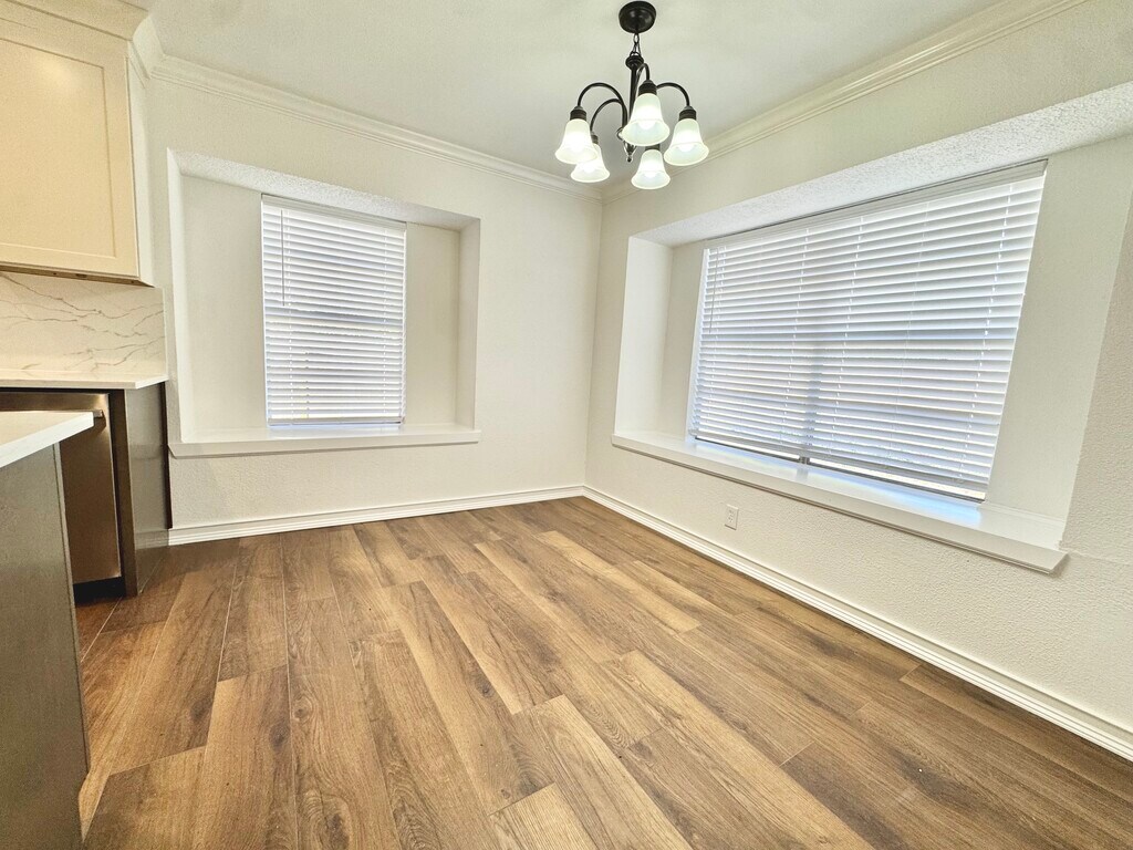 Welcome to this beautifully updated home that perfectly blends modern comfort with timeless character. Step inside to a newly redesigned kitchen, thoughtfully crafted to maintain the home's original charm while offering all the conveniences of today. Enjoy brand-new cabinets, granite countertops, & new stainless-steel appliances, making this a space you'll love to cook and gather in.Both bathrooms have been refreshed with new tile, updated plumbing fixtures, & new mirrors to be installed prior to move-in, creating clean, stylish spaces throughout. The entire home features fresh interior paint & new flooring, giving it a bright, move-in-ready feel. Outside, the nearly quarter-acre lot offers plenty of room to relax or entertain, complete with three newly planted, beautiful trees that will grow to provide shade and added charm. Perfectly situated near shopping, dining, & entertainment, this home offers the convenience you want with the comfort you deserve. Don't miss the opportunity to make this updated gem yours!