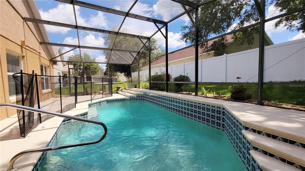 POOL HOME - NEW INTERIOR PAINT - Beautiful 4-bedroom 2-bath home located in the desirable Falcon Trace community. This one-story home has everything you can ask for: a formal dining and family room combo,a kitchen with a breakfast nook,a master bedroom suite with a walk-in closet and a bathroom with double sinks,a garden tub,and a separate shower,3 more bedrooms,and a shared bathroom. After work,you can relax in your own enclosed pool area (pool maintenance included). Close to shopping center,great restaurants,and an easy commute. Evaluation criteria for prospective tenants: - No Evictions - No Sex Offenders - Credit score minimum of 630 - Income to rent ratio of 3 times minimum - 1 small pet may be considered,provided it is a non-aggressive breed only. MLS# O6332754