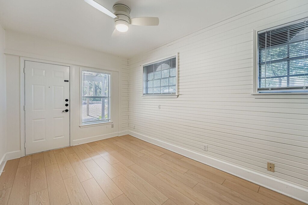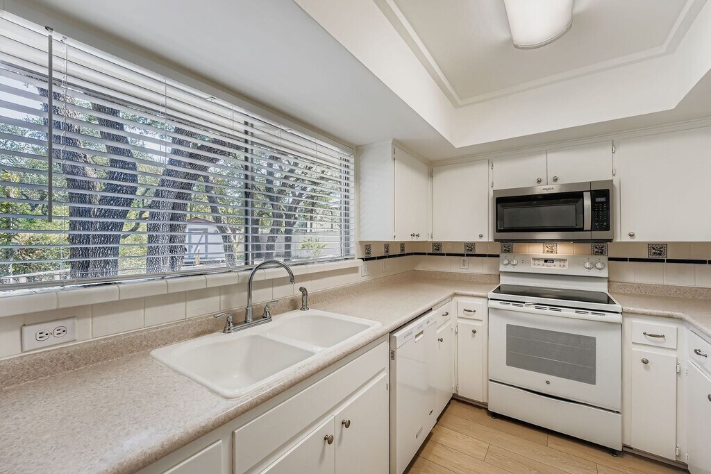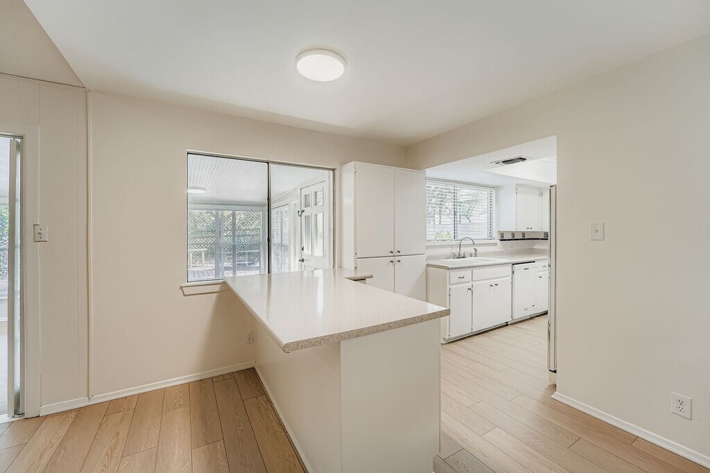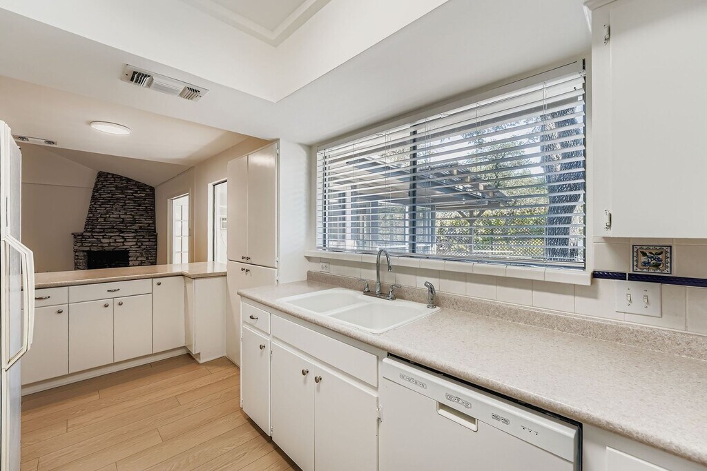Well kept mid-century ranch-style house on large lot in convenient Northwest Austin. The home is equipped with 3 bedrooms, 2 full bathrooms, large flex sun room, and office area. Home features a large living room with vaulted ceilings, floor-to-ceiling rock fireplace, new paint, new LVP flooring through out (no carpet), full kitchen with appliances, primary bedroom with vaulted ceiling and primary bathroom, washer/dryer, and a relaxing back patio deck overlooking oversized fenced backyard with storage shed and ample space to store additional items. Property has quick access to major thoroughfares yet is tucked away in a quite private neighborhood on a no-through street. Pet friendly with size/breed restrictions. Available in October 2025. Applicants must qualify.