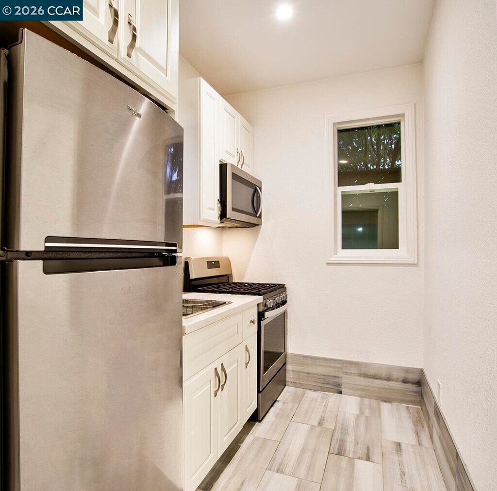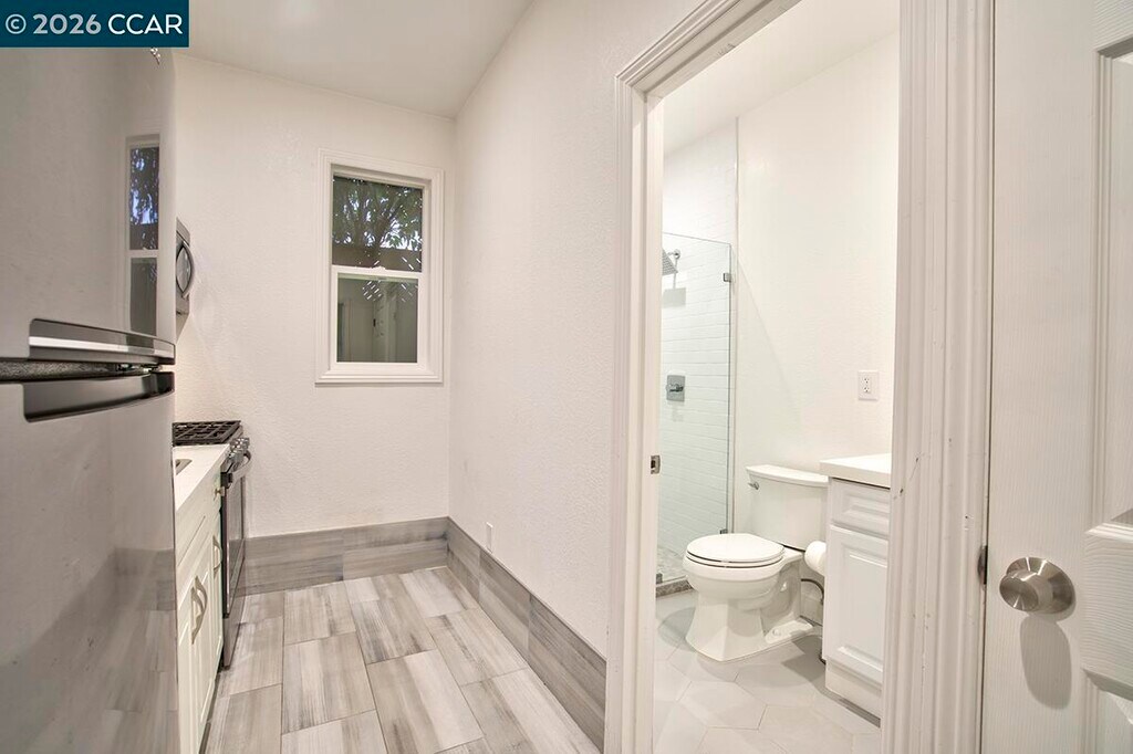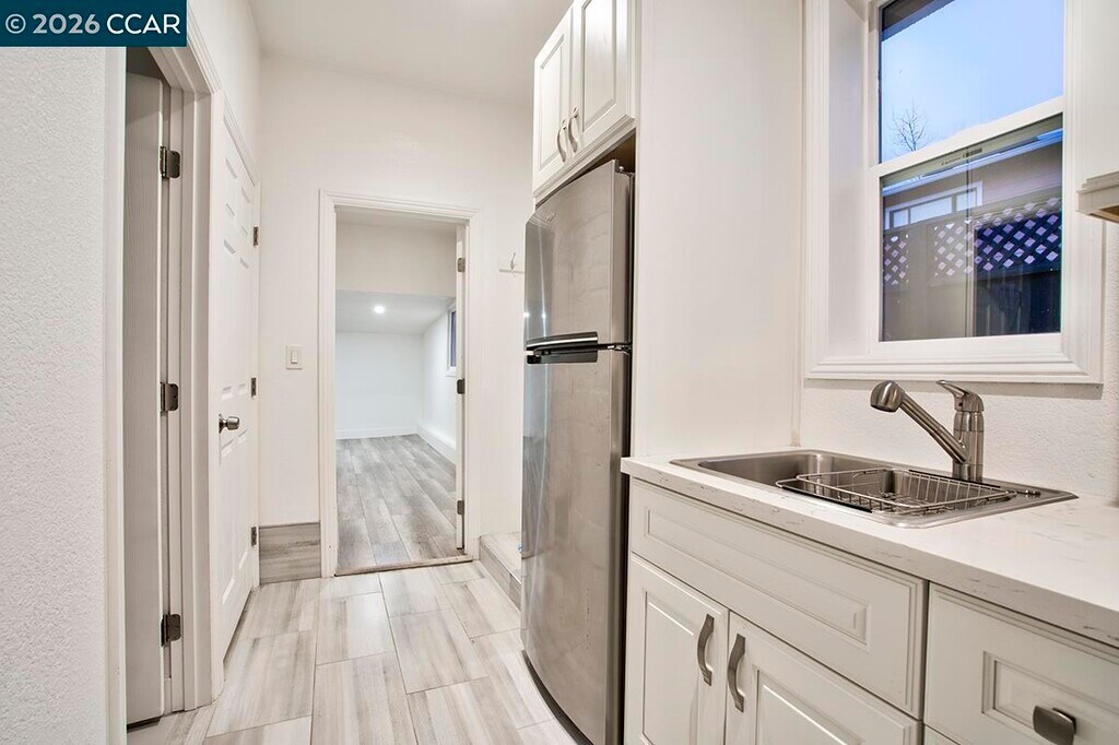 Newer Studio Suite in prime East End neighborhood! Enjoy bright,open space with your own private gated entry. This beautiful home features volume ceilings with laminate flooring,recessed lighting,and efficient wall heating in living area. You will enjoy a modern kitchen and bath featuring stainless steel gas range,stainless steel refrigerator,beautiful large tiled shower,and elegant vanity. There is a full size washer and dryer and private enclosed front yard with patio,storage,and garden area. This lovely home is in a prime million dollar residential neighborhood with plenty of off-street parking. This home is situated in an excellent commute location,just minutes to the waterfront,walking trails,Park St restaurants and shopping,Alameda beach,I-880 freeway,downtown Oakland,SF,SF Ferry,and Oakland airport! This unique studio is ideal for a single professional. All utilities included,except WIFI! Pet friendly! Open Wed.,3/18,5-6P!