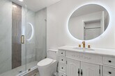 This home was completely and beautifully remodeled in 2024 to very high standards and is spacious and gorgeous!! The vaulted ceilings in the living room give a feeling of extra space. The new kitchen features low maintenance and beautiful quartzite with cool and warm tones that go with any decor but is modern and clean. The master suite is large with extra spaces for a personal gym or office. The lighting is all up-to-date and fabulous. The large living room extends to a bonus space overlooking the fenced backyard and the outdoor furniture in the photos comes with the home. There is a washer and dryer for you to use and a spotless 2-car garage. The home is currently occupied and will be brought back up to the standards you see in the photos before move-in. The home will be available to move into on September 1st.