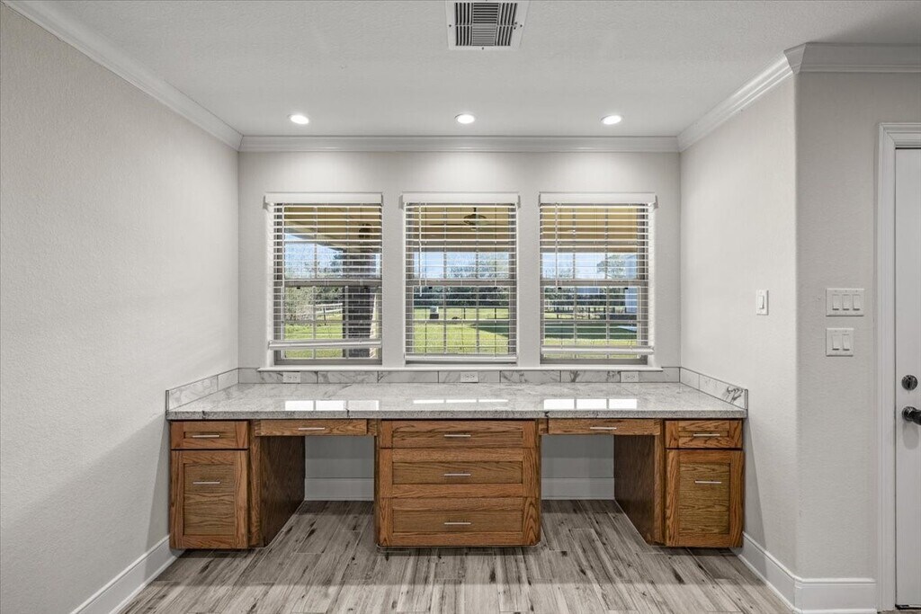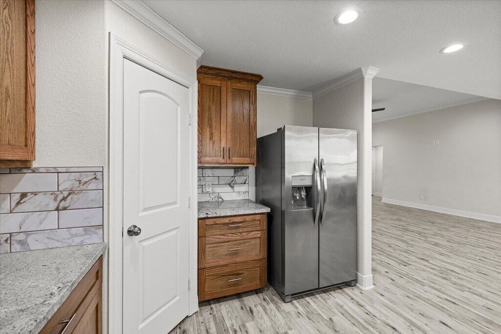 Looking for a three-bedroom two-bath two-car garage rental located in Santa Fe ISD zone to RJ Wollam Elementary? This property is available now with its spacious open floor plan offering granite countertops,stainless appliances,plenty of corner pantry space along with a dual built in desk/office area lined with south facing windows. The primary bedroom has two closets and en-suite bathroom also has two oversized corner closets,dual vanities and large marble shower. This split floor plan has two bedrooms,two hall closets and a full tub/shower combo bathroom opposite the primary bedroom. Located on a quiet dead end street,this home is perfect for a tenant wanting a relaxed country atmosphere while still close to city amenities. MLS# 6775987