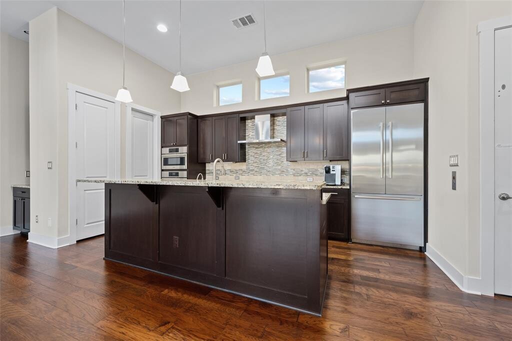 NOTE: When using the elevator, close both the door and gate upon entering. Then select the floor. When exiting, close both the gate and door so it can be called for use from another floor level. Beautiful 3-level townhome in the heart of the Galleria with a private elevator and fenced courtyard. Open floor plan with walls of windows, stained glass transom windows, hardwood & tile flooring throughout. Gourmet kitchen with Bosch appliances, granite countertops, large walk-in pantry & breakfast bar. Features include , surround sound speakers in ceilings, fully networked with Mesh WiFi , central vacuum, custom blinds, wood shutters, and a wood-burning fireplace. Entry level has 1 guest bedroom with full bath, 2-car garage with epoxy floors & storage. The second level boasts a spacious living area with high ceilings, recessed lighting, a powder room, and a large covered balcony. The third level includes an additional guest bedroom with a full bath, laundry room with new washer/dryer, and the expansive owner's suite with sitting area & newly installed wood floors, walk-in closet, garden tub, custom shower & double vanities. Upgrades galore in this move-in ready condo.