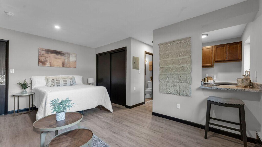 3rd floor unit with updated flooring, kitchen, appliances, and tiled shower Renovated 1 bedroom and studio apartments in a prime location of the desirable city of Lakewood with private parking.