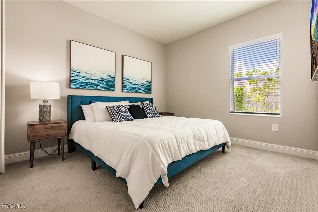 Welcome to this stunning 3-year-old home located in the Verandah gated community,being offered Turnkey and with full golf membership. This home embodies the perfect combination of luxury,comfort,and convenience,designed to enhance the ultimate SWFL lifestyle. With 2064 sq. ft. of living space,this home features 4 bedrooms,3 full baths,and an open layout as you step through the foyer. The kitchen is a focal point of the home,boasting modern quartz countertops,stainless steel appliances,ample cabinet space,elegant light fixtures,and accents,as well as a spacious breakfast bar area for family dining. Adjacent to the kitchen is a generous eat-in area with picturesque views of the Lanai and partial Golf Course. The upgraded tile flooring in all main areas and the main bedroom,along with upgraded carpet in the remaining 3 bedrooms,and modernized bath countertops contribute to the overall luxury of the home. The Family room showcases a marble tile wall,a unique feature rarely found in homes of this size. All bedrooms in this contemporary home are generously sized and tastefully appointed. The Main bedroom includes a cozy seating area,while the Master Bath features a large walk-in shower. The outdoor screened-in pool area is ideal for relaxation and entertainment,complete with a custom pool featuring a water feature,upgraded landscaping and flowers,a large picture window screen,and two seating areas for outdoor dining and relaxation. Additional features of the home include IMPACT windows and doors,an epoxy garage floor with ample storage shelves,and a separate laundry room with a tub and cabinets. Situated in the Verandah community,residents have access to a plethora of amenities including 2 Championship Golf courses designed by Jack Nicklaus and Bob Cupp,a state-of-the-art fitness center,tennis and pickleball courts,bocce,playground,dog park,kayaks,9 miles of walking and jogging paths,multiple restaurants,and a vibrant social calendar catering to everyone's needs. Don't miss the opportunity to schedule a viewing today and make this luxurious property your own piece of paradise
